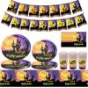 Halloween Transfronterizo Nuevos Suministros para Fiesta Vajilla Desechable Set Fiesta Fiesta Decoración Platos de Papel Desechables