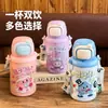 Taza Pop-Up Infantil de Dibujos Animados para Doble Bebida Acero Inoxidable 316 Linda y Divertida Taza Aislada para Estudiantes Vaso con Pajita y Correa Portátil
