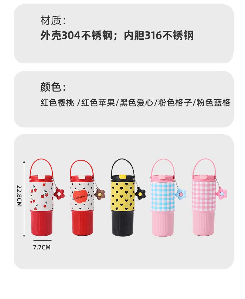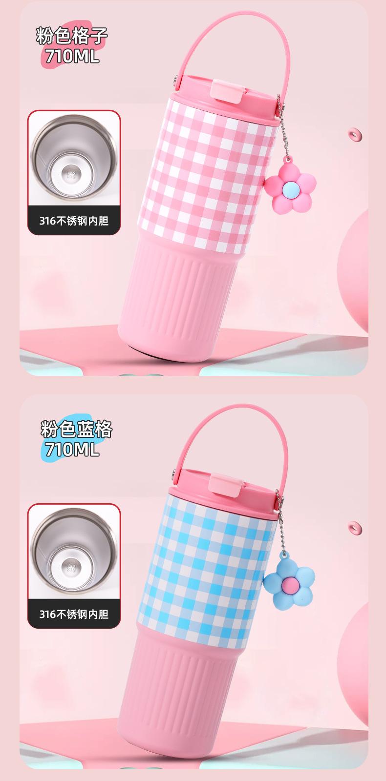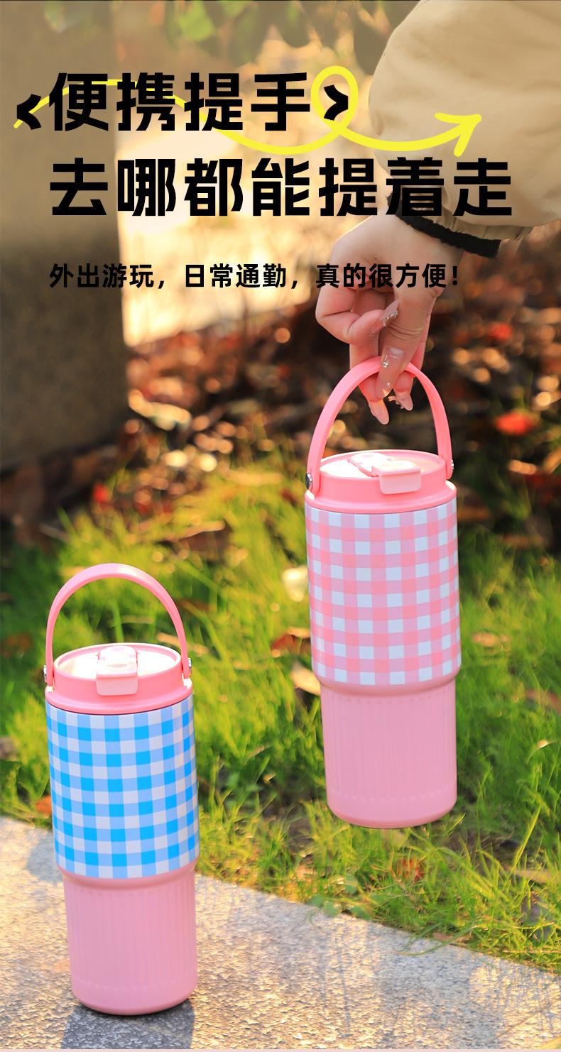 Nuevo Vaso Termo Creativo a Cuadros de Acero Inoxidable para Hielo con Asa y Popote Vaso para Coche Portátil de Aspecto Elegante