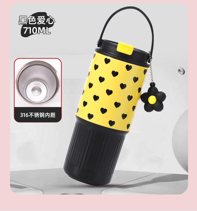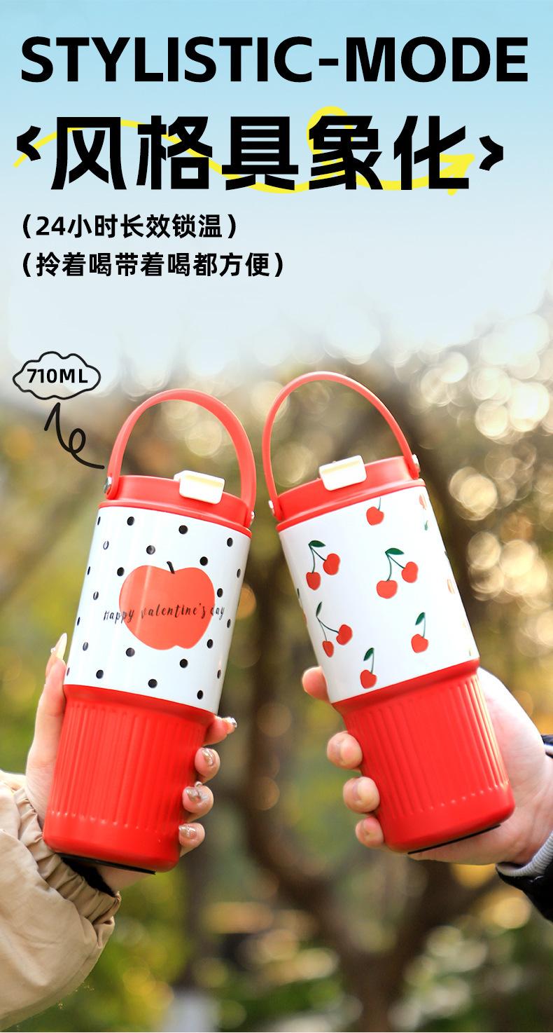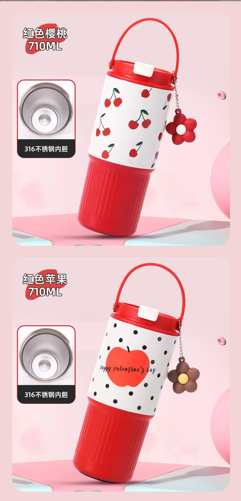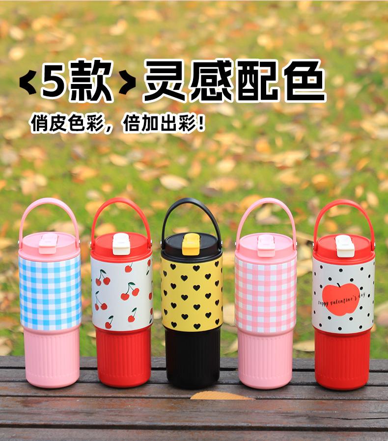 Nuevo Vaso Termo Creativo a Cuadros de Acero Inoxidable para Hielo con Asa y Popote Vaso para Coche Portátil de Aspecto Elegante