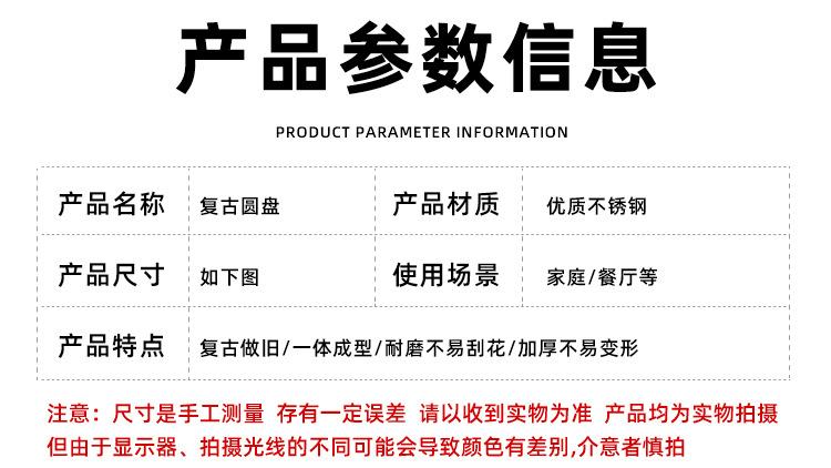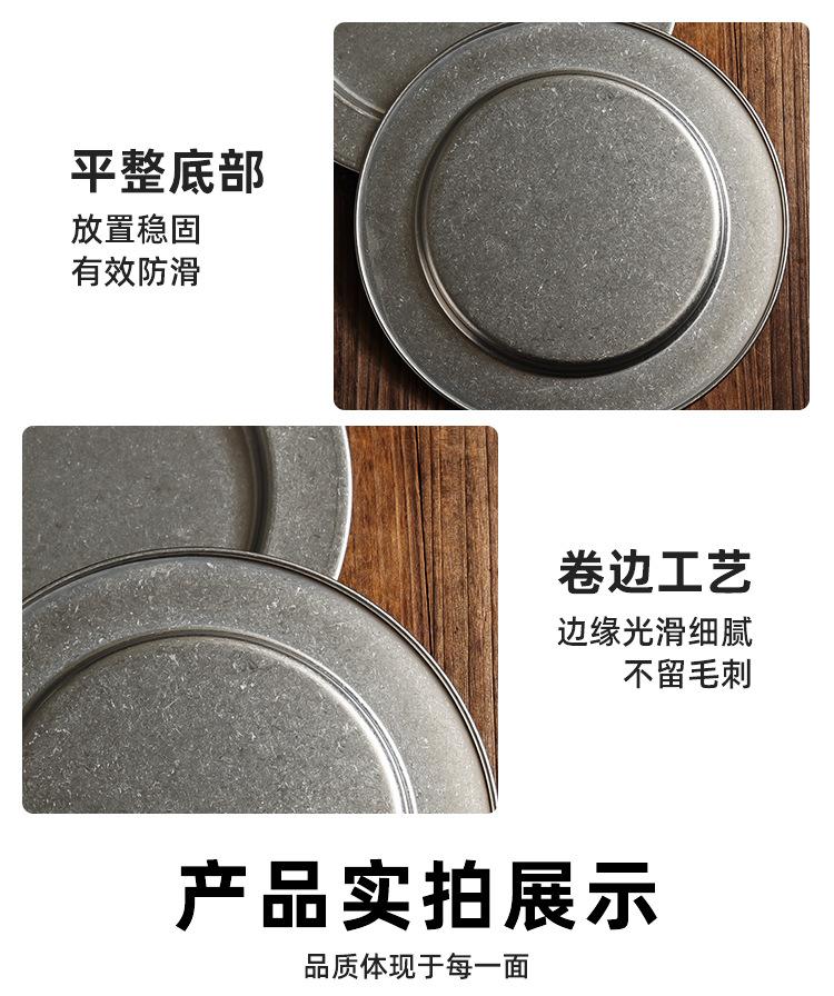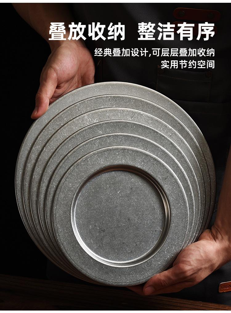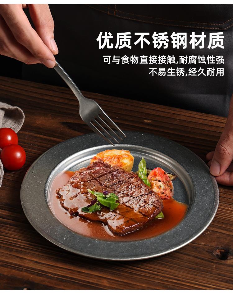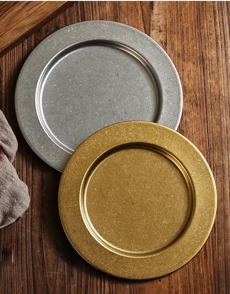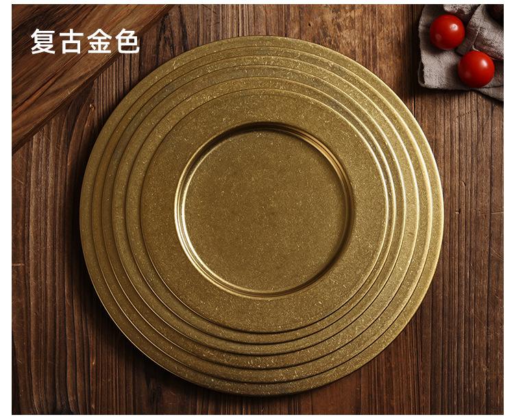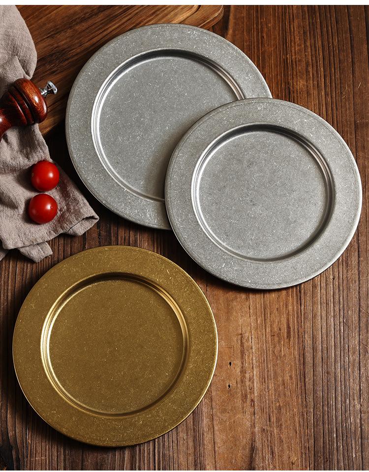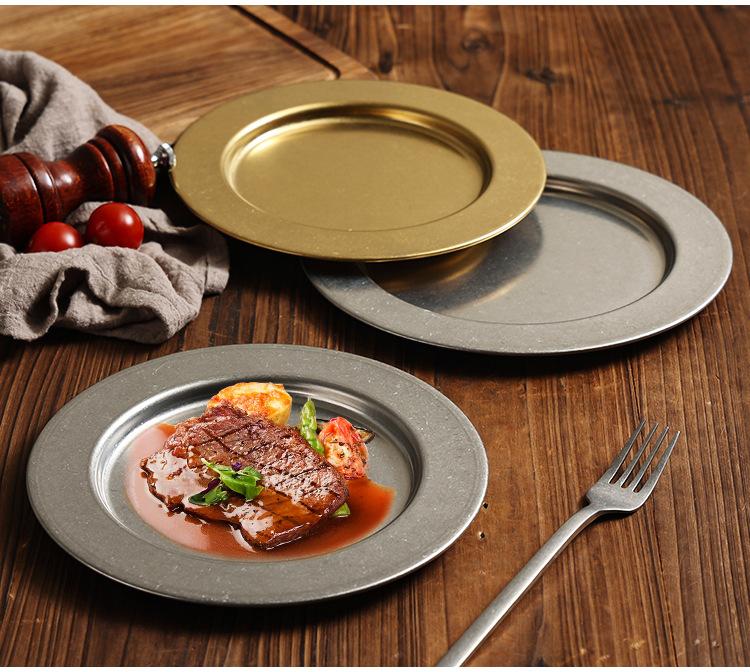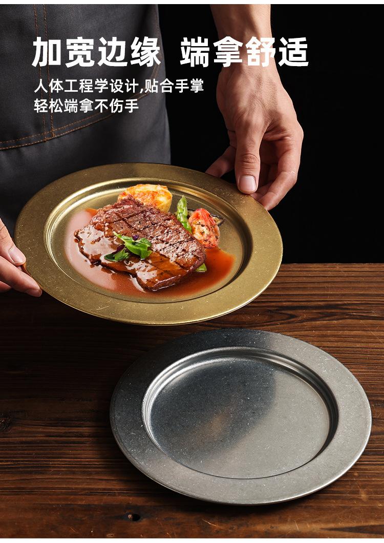 Plato Redondo Retro de Acero Inoxidable Dorado Plato para Bistec Plato para Barbacoa Plato para Cena Plato para Pizza Plato Hondo para Comida Occidental Bandeja Plana para Buffet