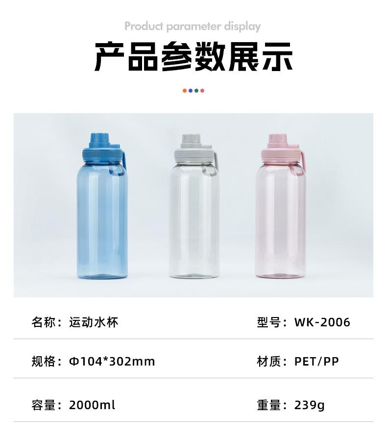 Botella de Agua Deportiva de Gran Capacidad Vaso de Plástico 2L Vaso para Beber Directamente para Adultos Portátil para Montañismo al Aire Libre y Ciclismo Vaso de Agua para Estudiantes