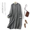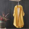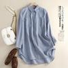 Camisa de Algodón y Lino de Largo Medio para Mujer Primavera y Otoño 2025 Nueva Camisa Holgada y Versátil de Manga Larga Look Adelgazante Top Chaqueta Exterior