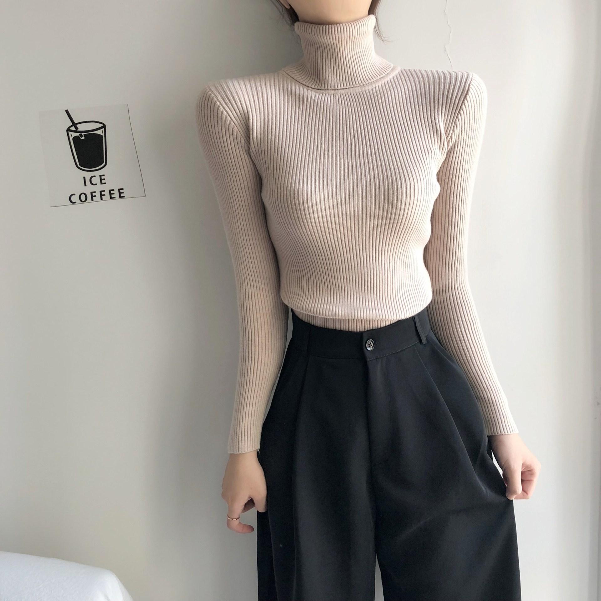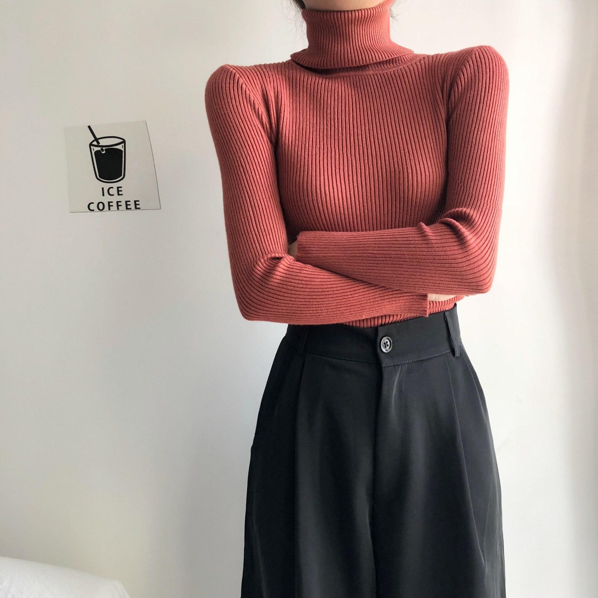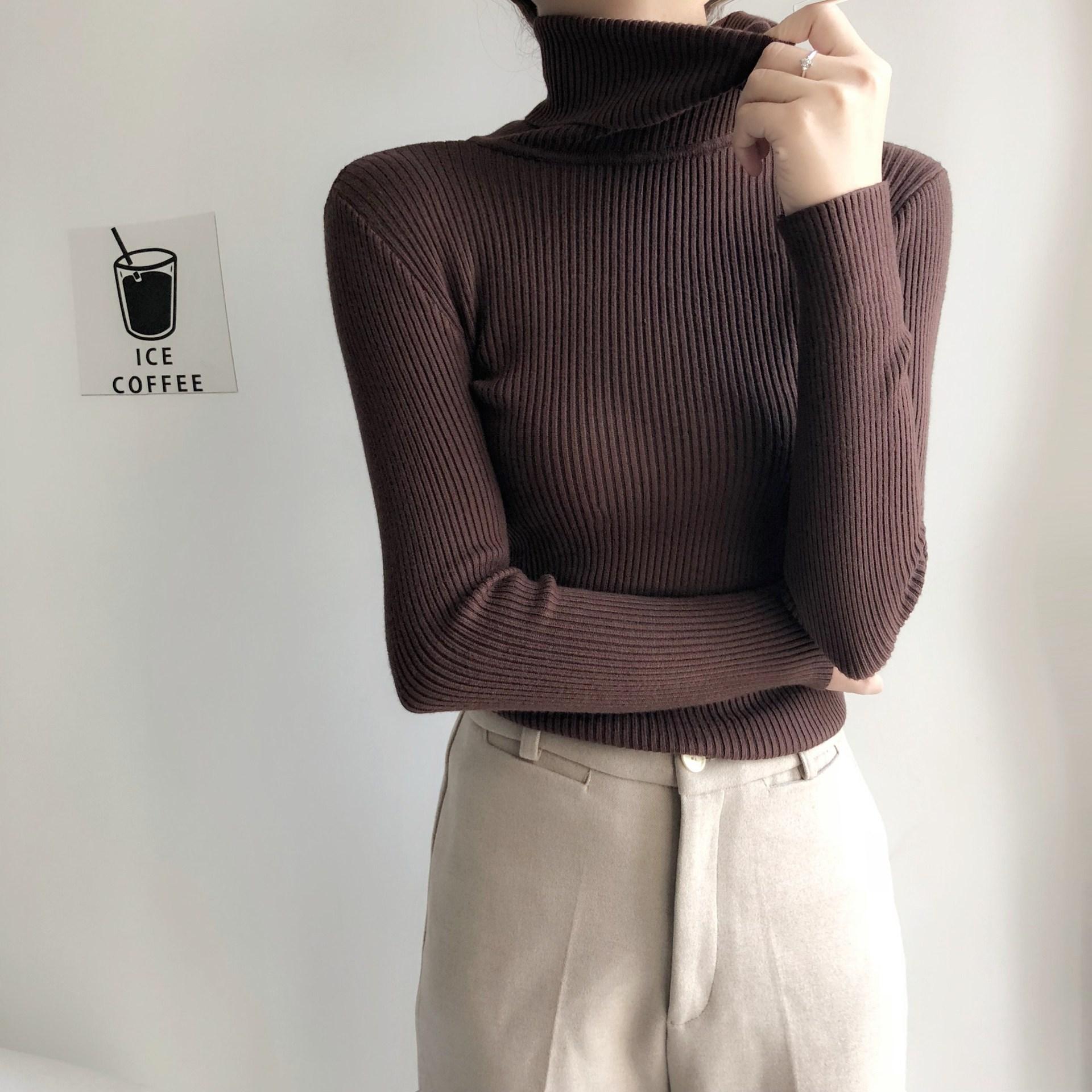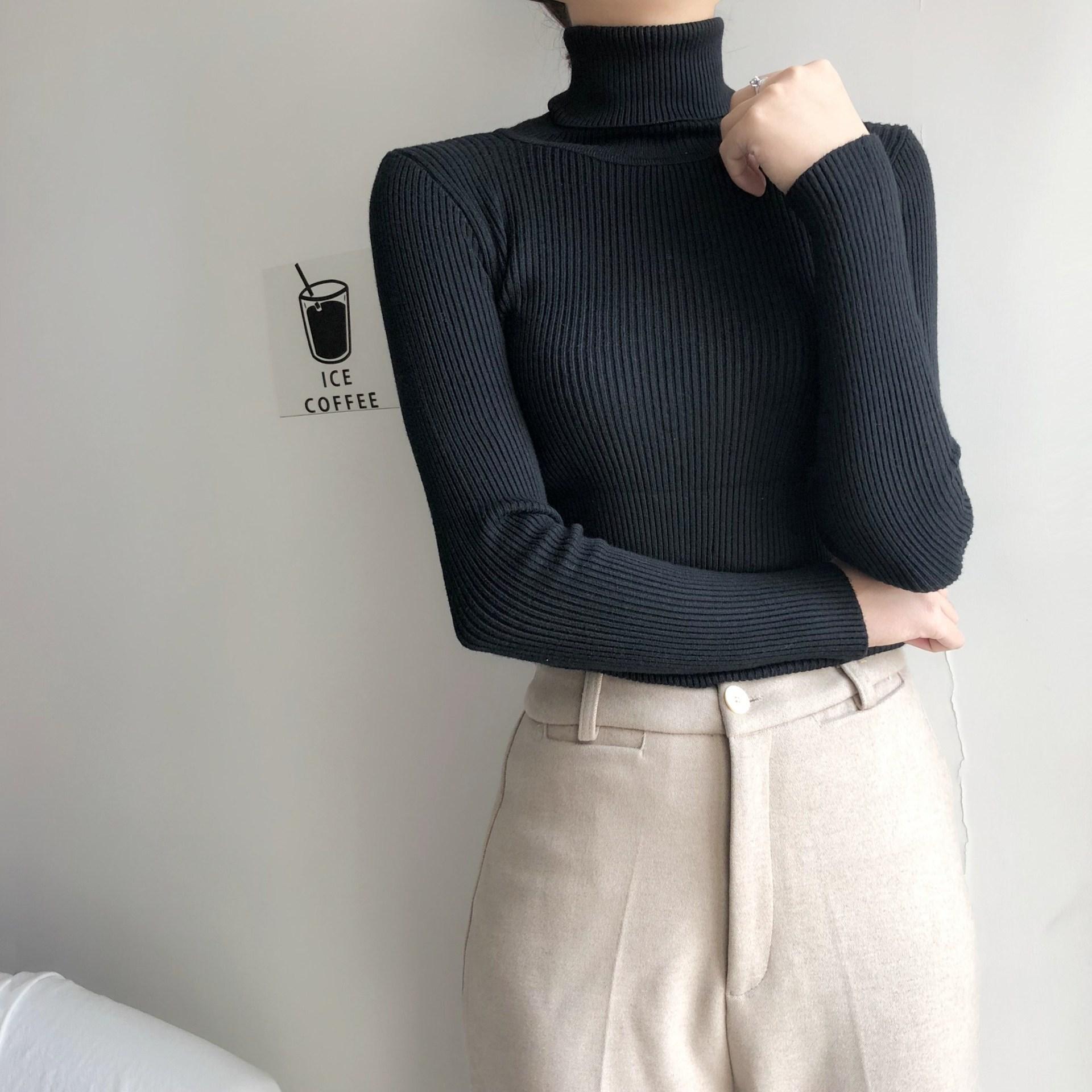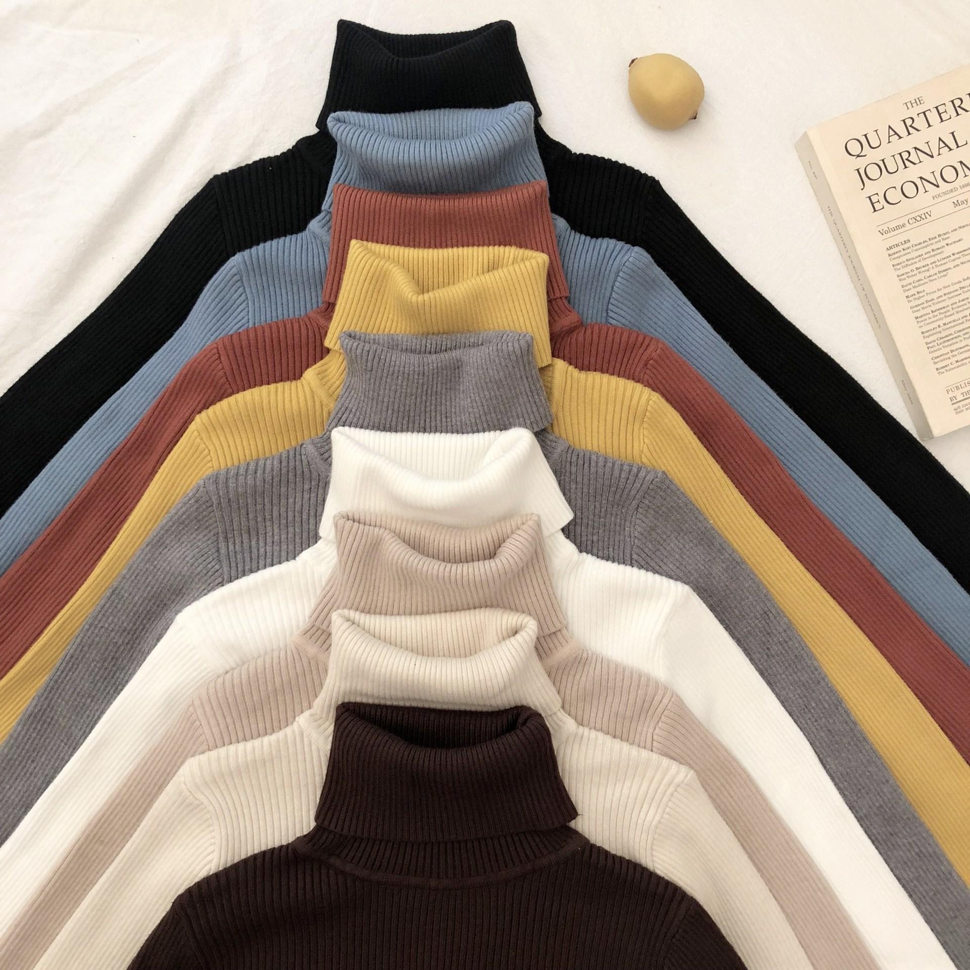 Otoño e Invierno 2025 Nuevo Suéter de Cuello Alto Top de Manga Larga de Color Sólido Camisa de Punto Ajustada Camiseta Base para Mujer Styky Ins Trendy
