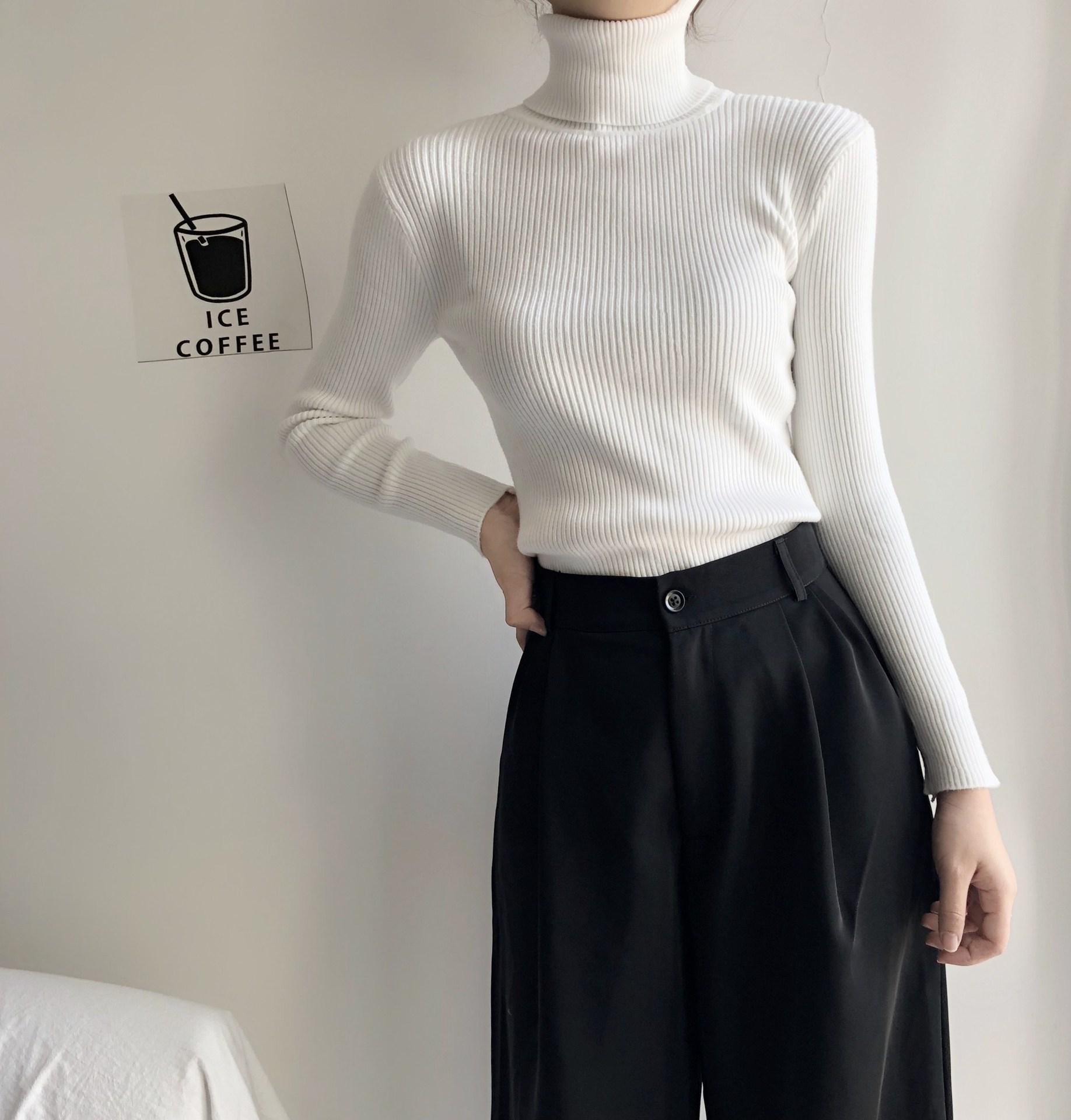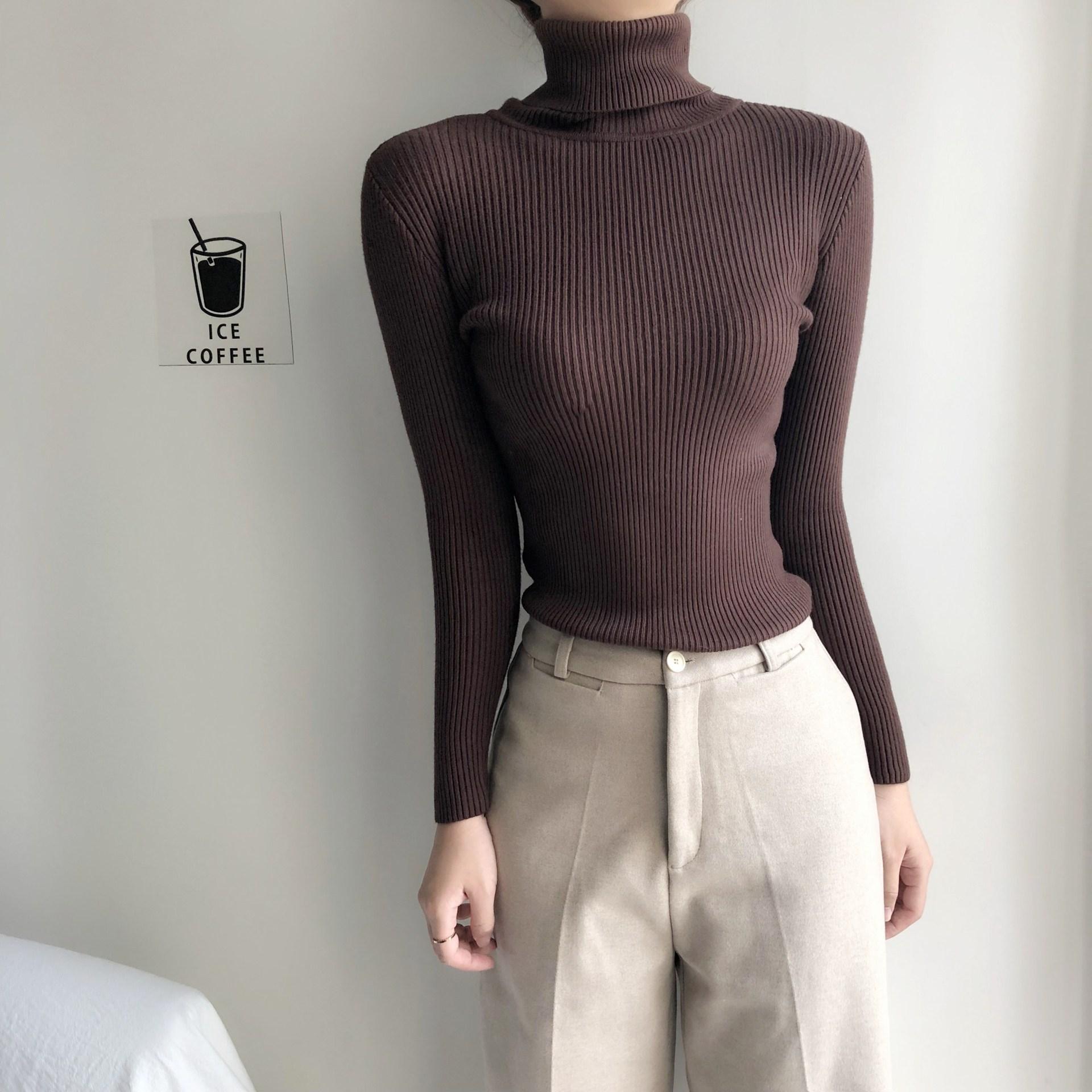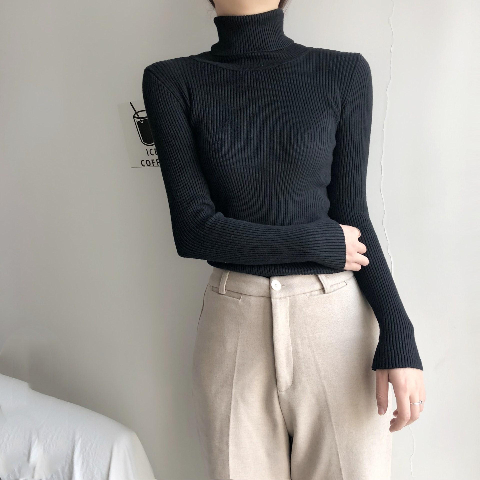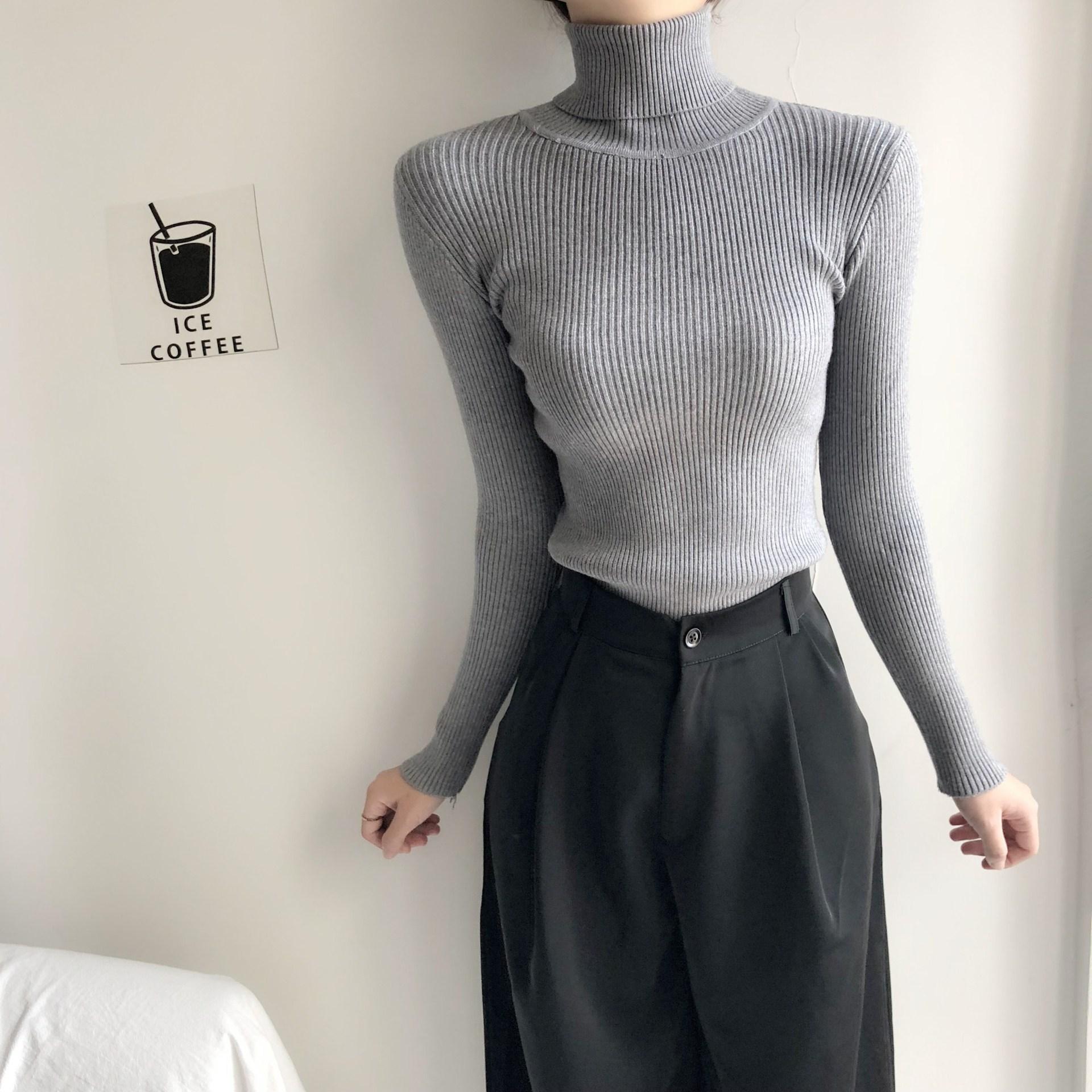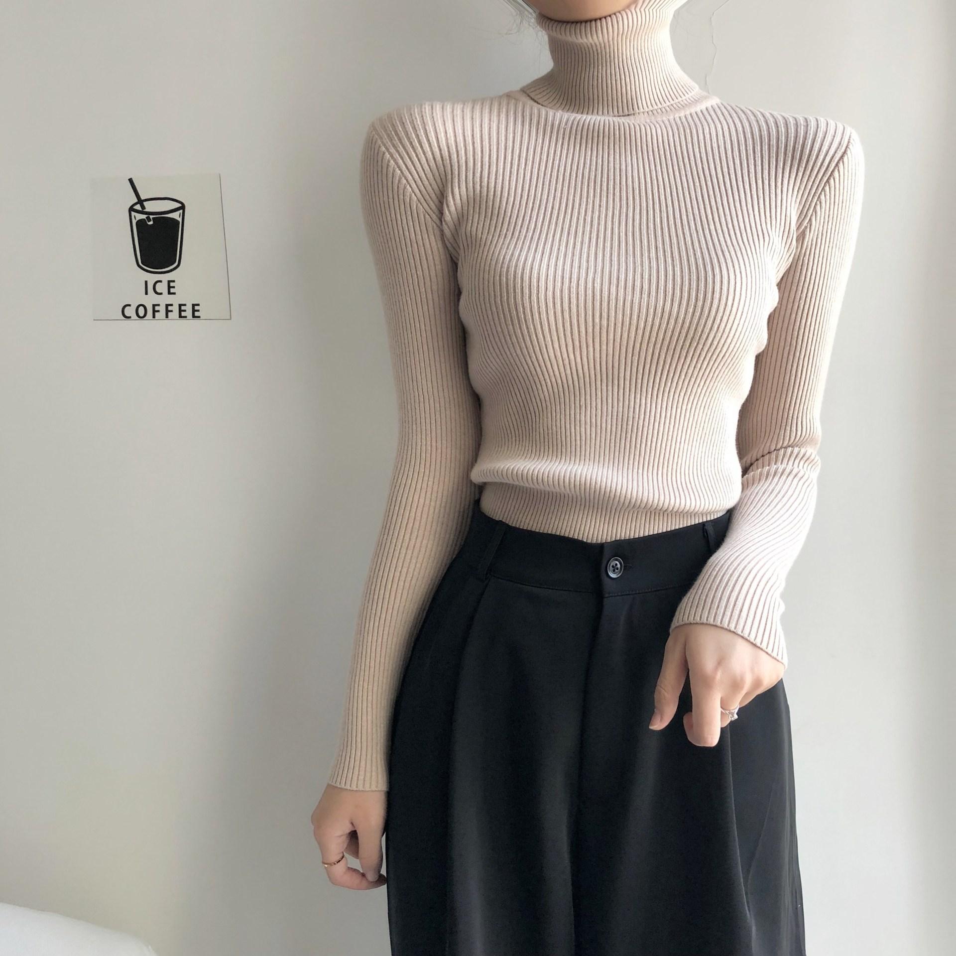 Otoño e Invierno 2025 Nuevo Suéter de Cuello Alto Top de Manga Larga de Color Sólido Camisa de Punto Ajustada Camiseta Base para Mujer Styky Ins Trendy