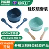 Tazón de Silicona Antideslizante de Grado Alimenticio, Plato para la Cena de Niños, Tazón para Comida Complementaria, Tenedor y Cuchara, Set de Vajilla Portátil de Silicona Personalizable para Bebés