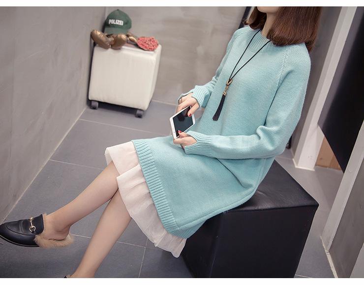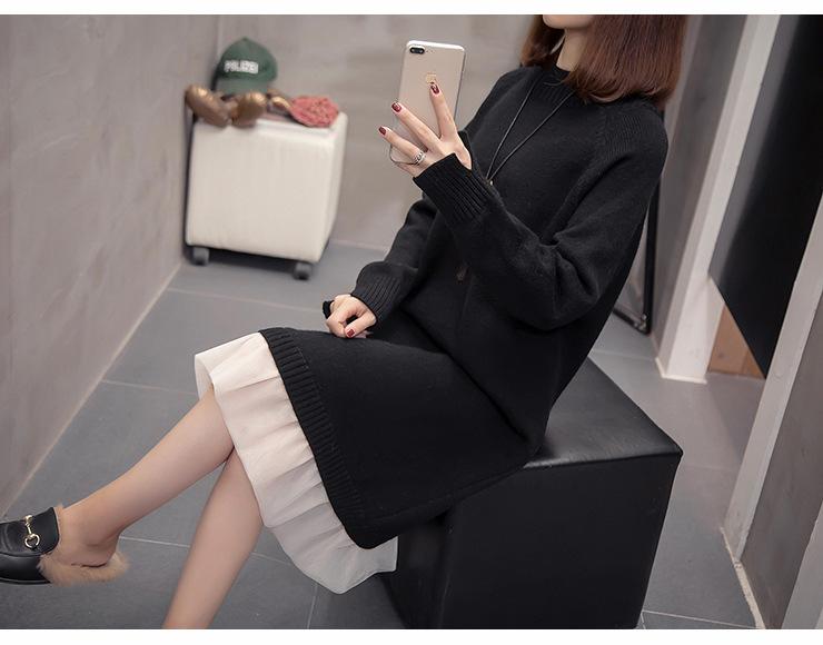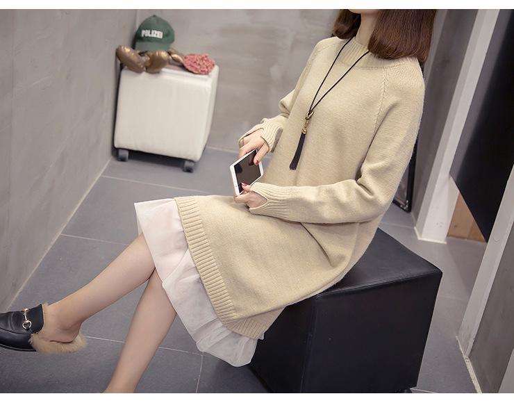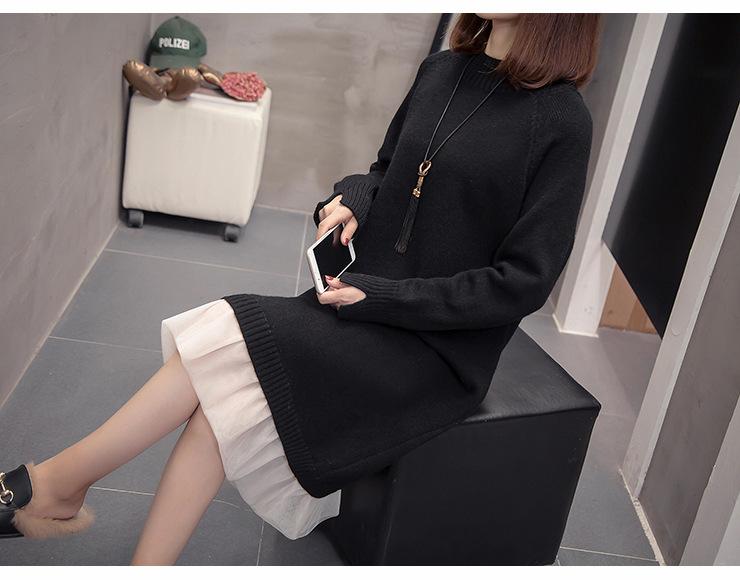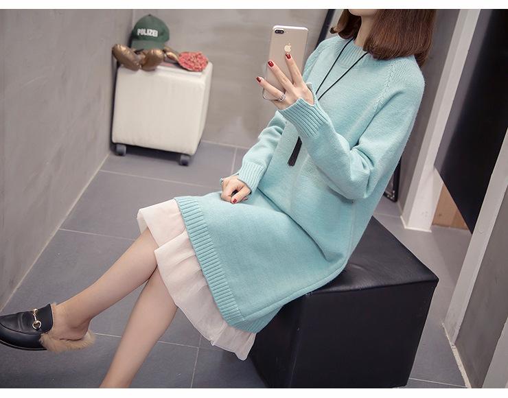 Maternidad 2022 Invierno Nuevo Vestido Suéter con Costuras de Chifón Pequeño Fresco Media Longitud Suéter de Lactancia para Maternidad