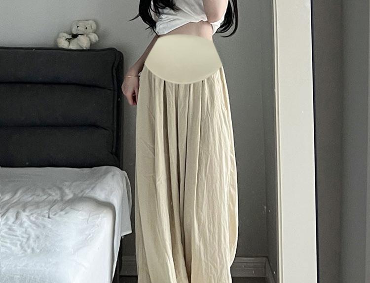 Pantalones para Mujeres Embarazadas 2024 Verano Nuevo Algodón y Lino Ropa Exterior Seda Helada Pantalones de Pierna Ancha Estilo Japonés Lazy Yamamoto Pants