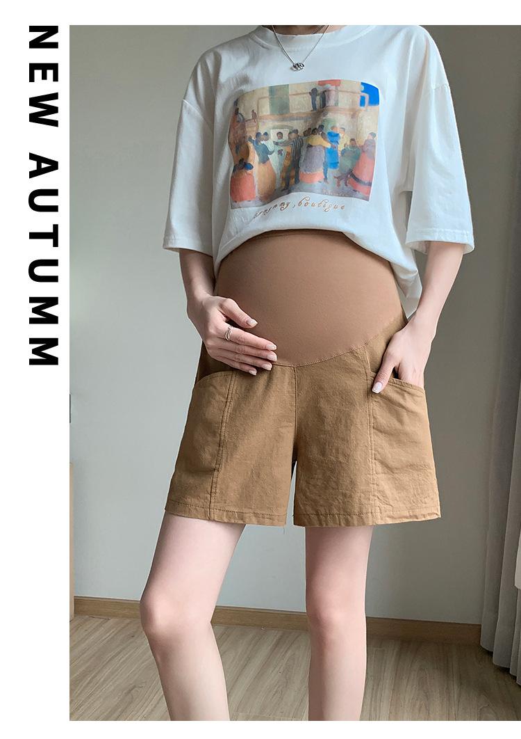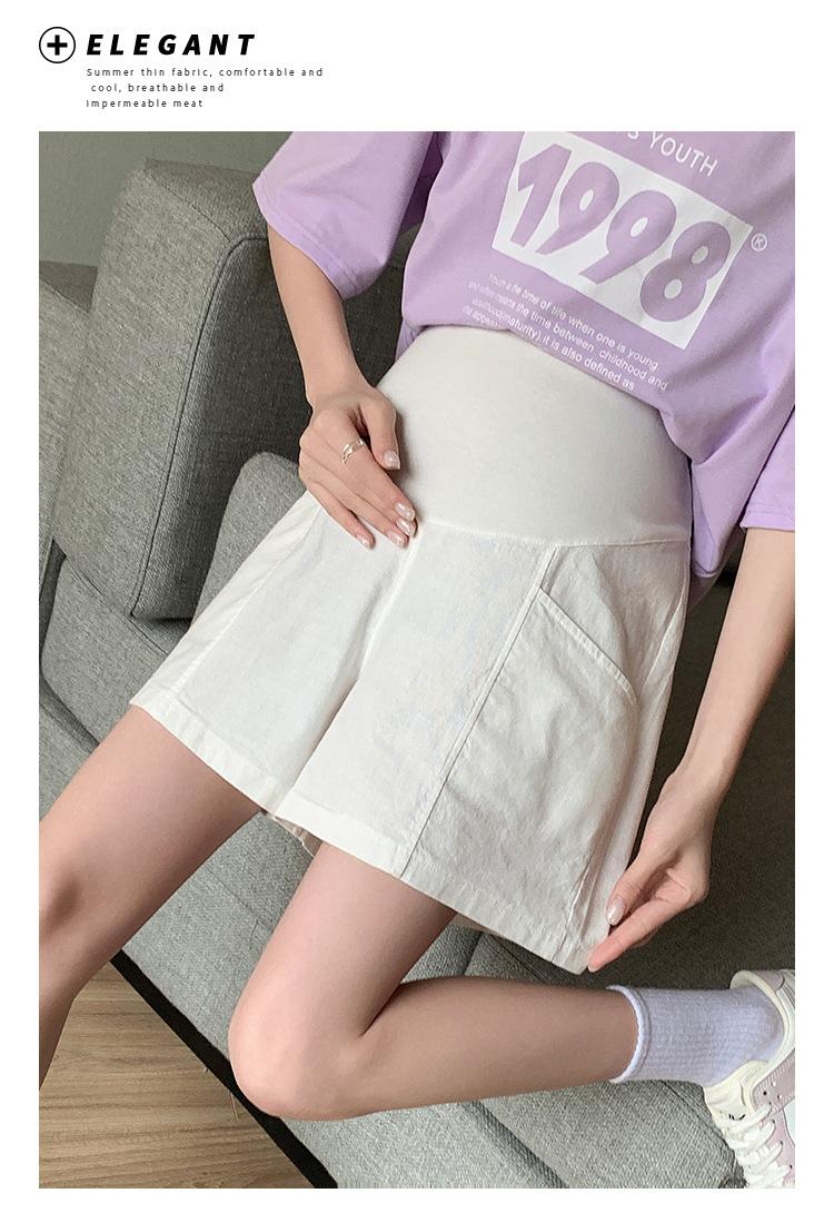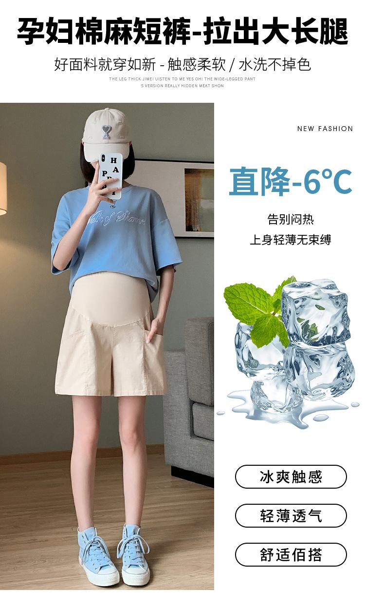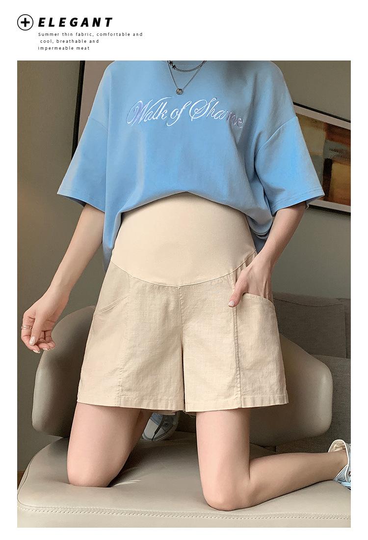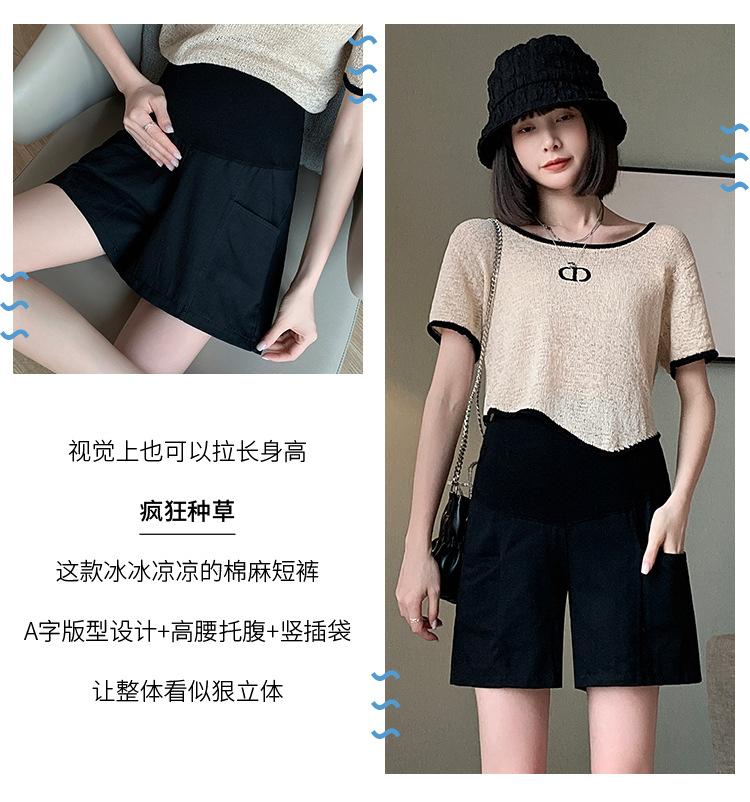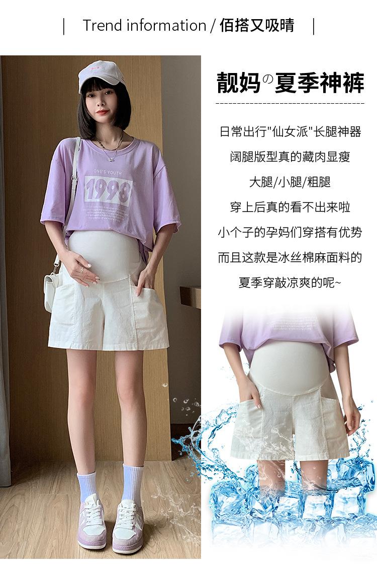 Pantalones de maternidad 2024 Verano nuevos pantalones cortos de algodón y lino de seda de hielo de pierna ancha adelgazantes línea A ropa exterior pantalones cortos de soporte para el vientre de maternidad