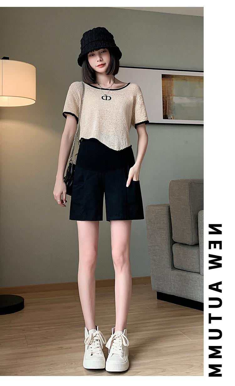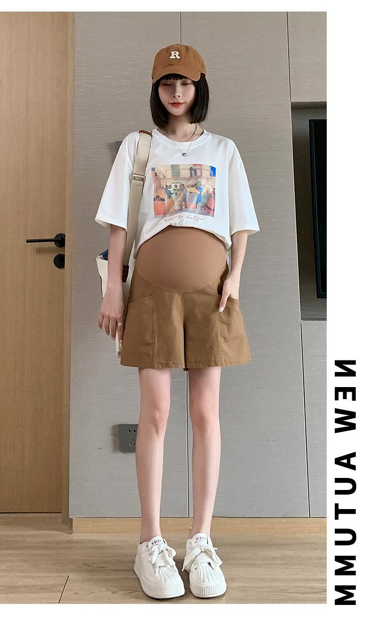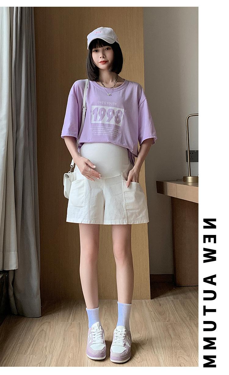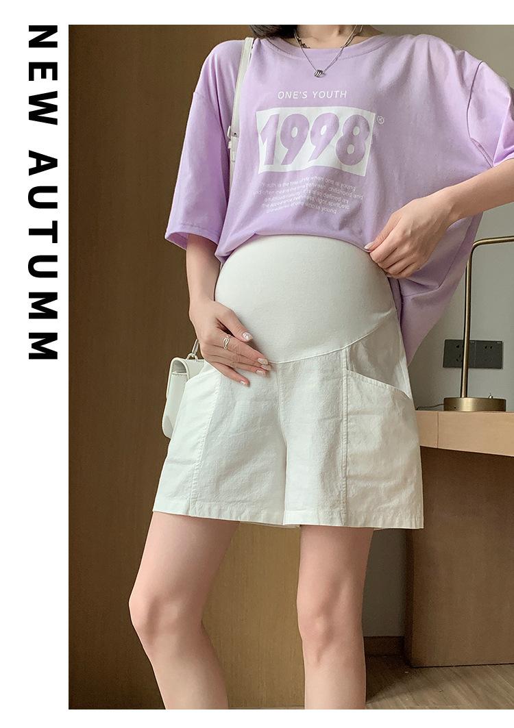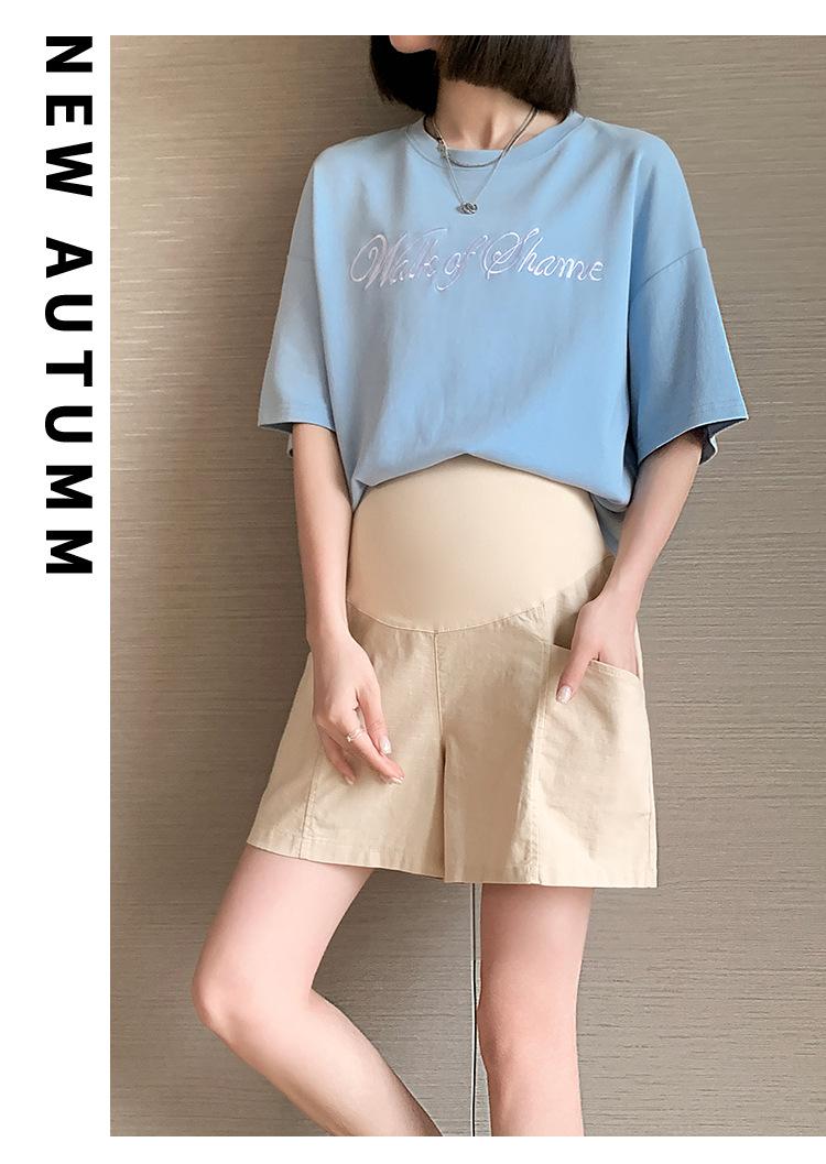 Pantalones de maternidad 2024 Verano nuevos pantalones cortos de algodón y lino de seda de hielo de pierna ancha adelgazantes línea A ropa exterior pantalones cortos de soporte para el vientre de maternidad