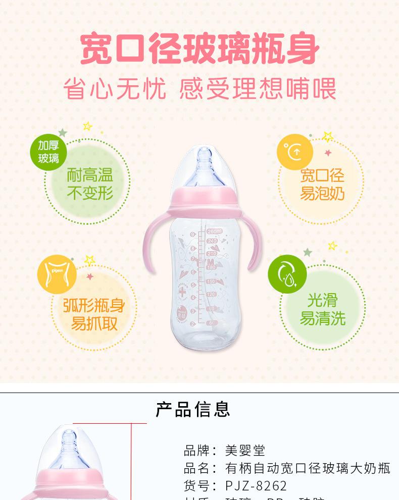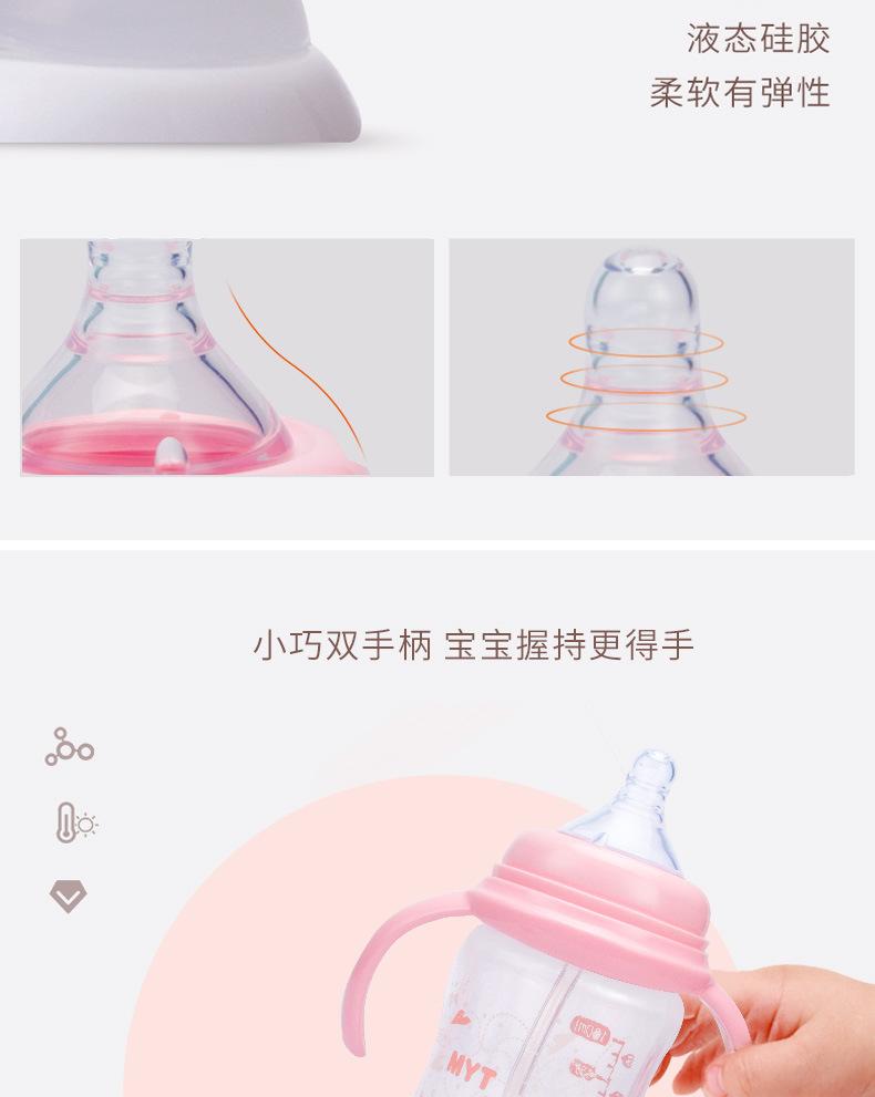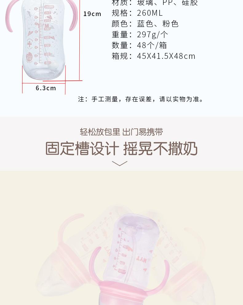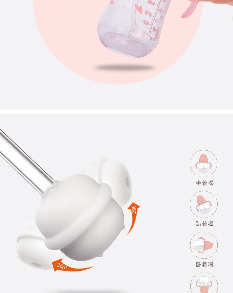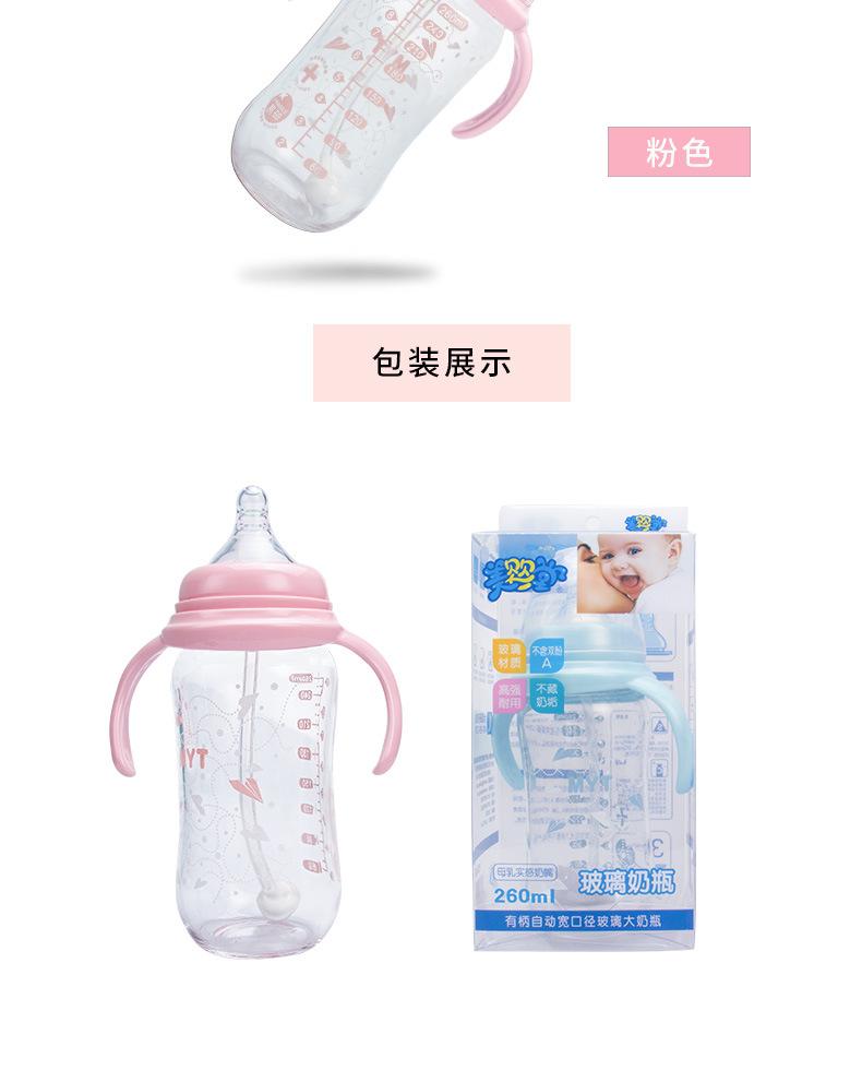 Biberón de Vidrio para Bebé de Boca Ancha Creativo 260ml Biberón con Chupón con Asa Vaso con Pajita Suministros para Madre y Bebé al Mayoreo