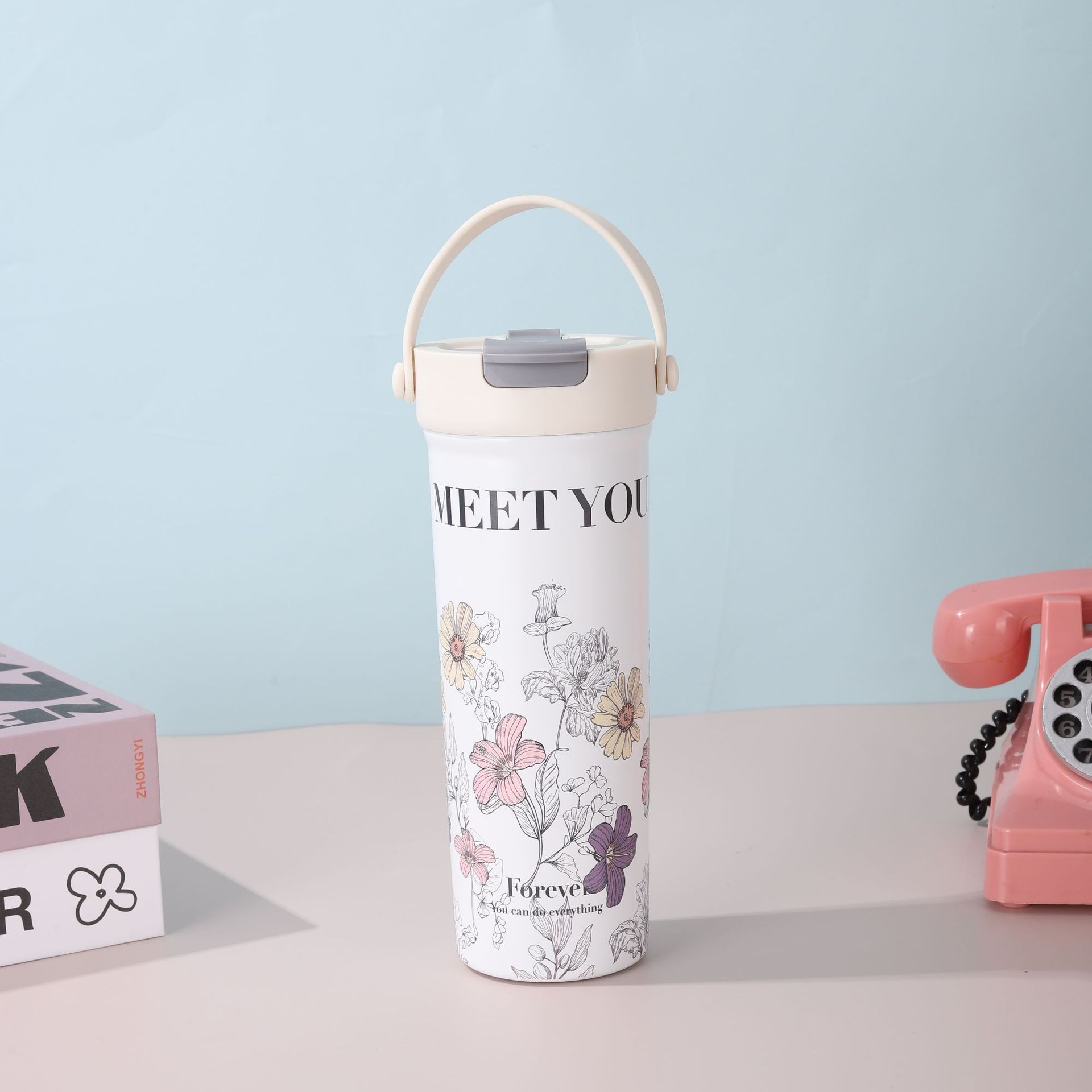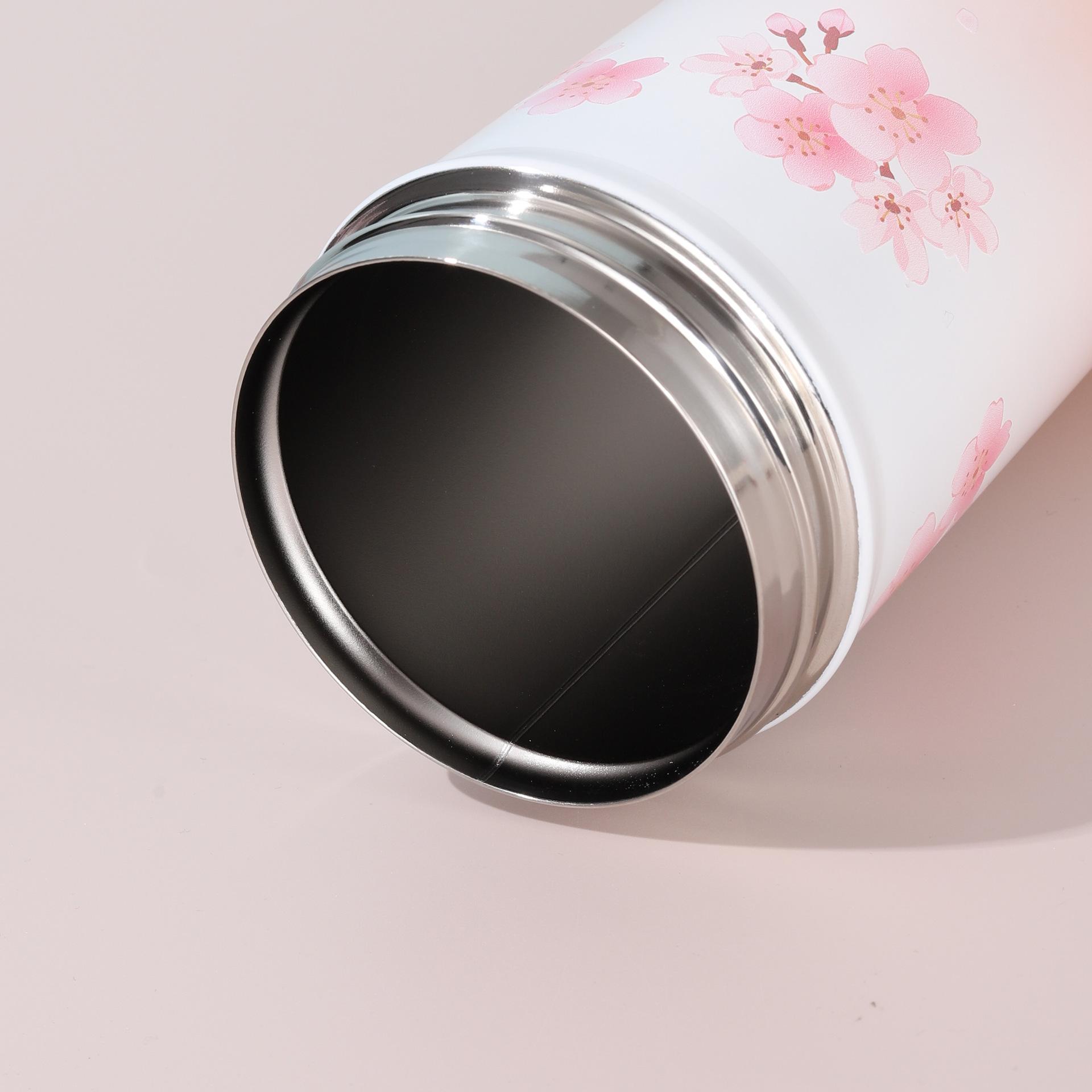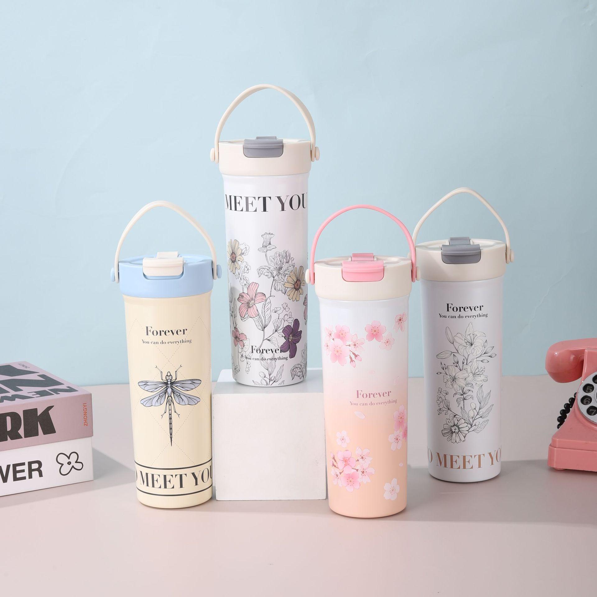 Nueva Taza de Té de Flores de Aspecto Elevado Portátil para Doble Bebida Vaso de Agua para Estudiante Vaso Termo de Acero Inoxidable Separación de Agua y Té Vaso con Pajita
