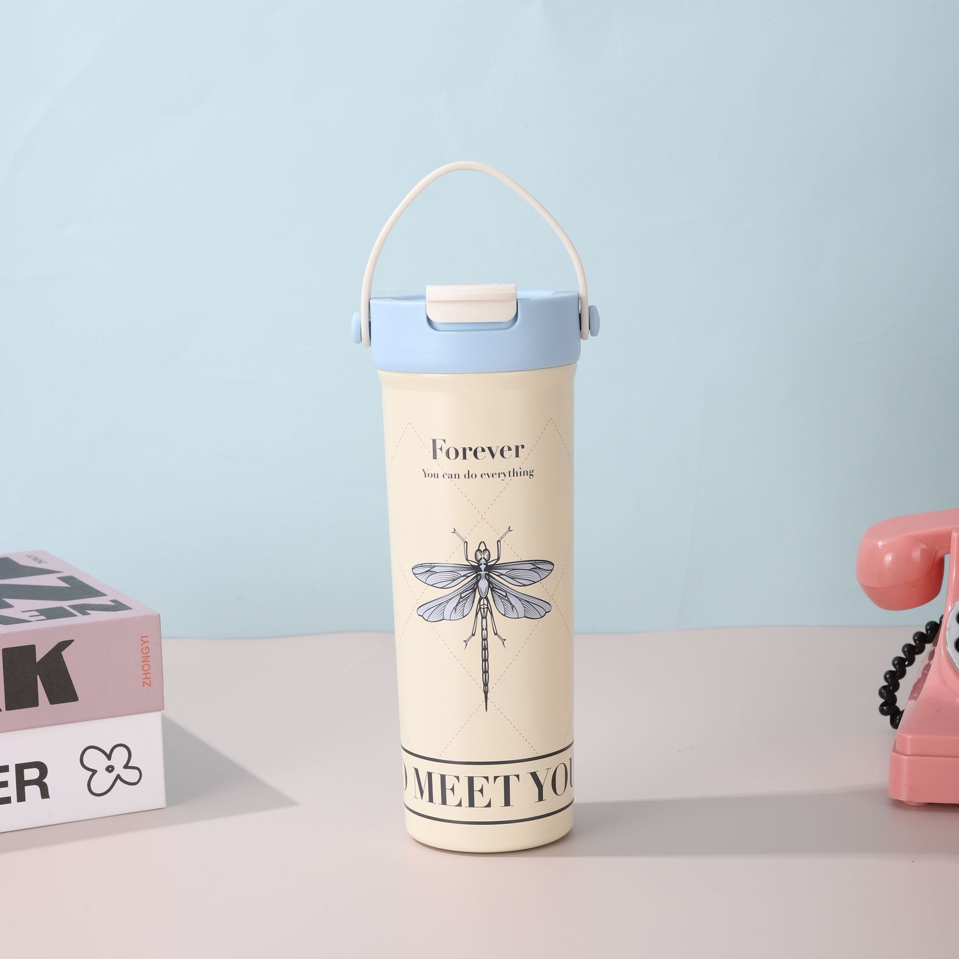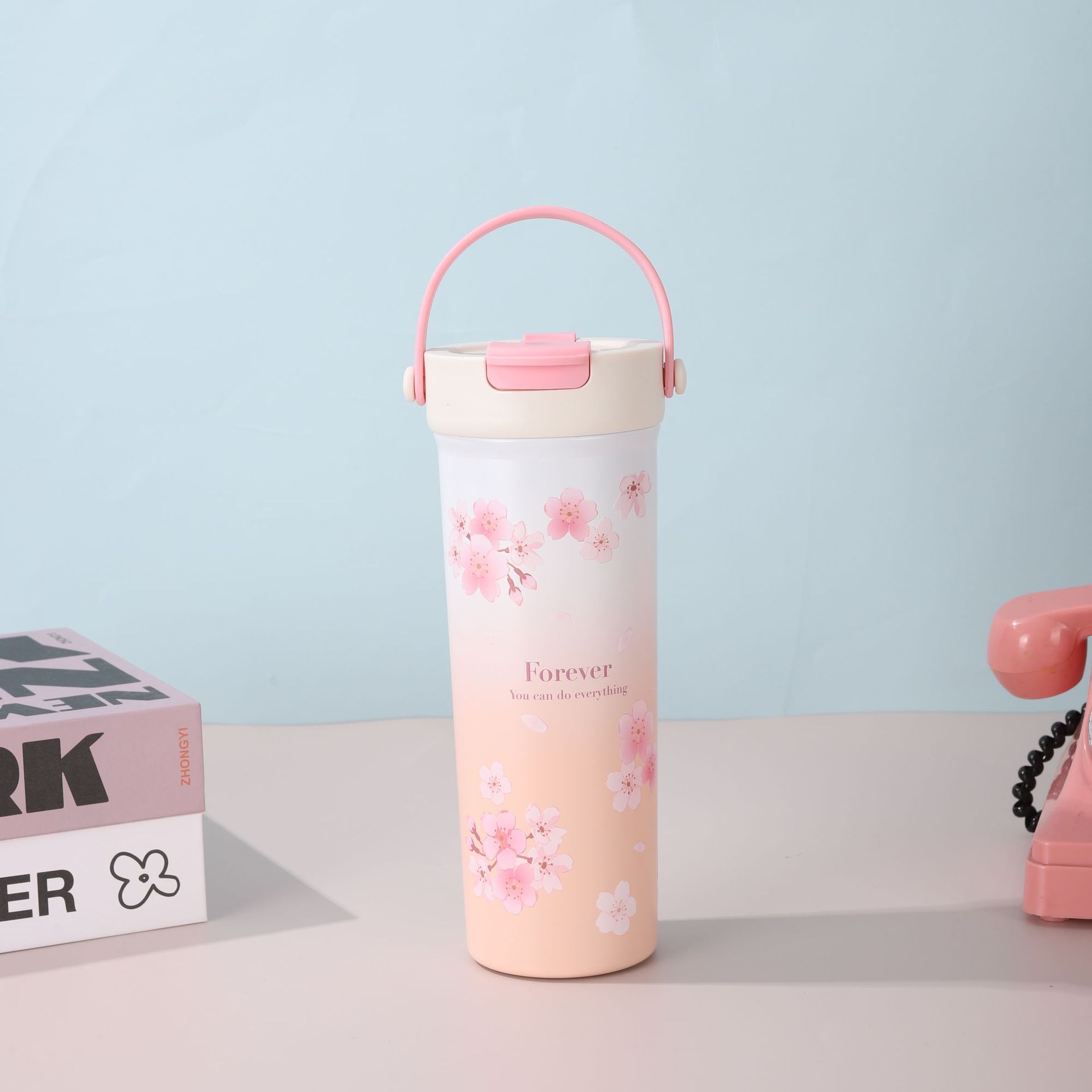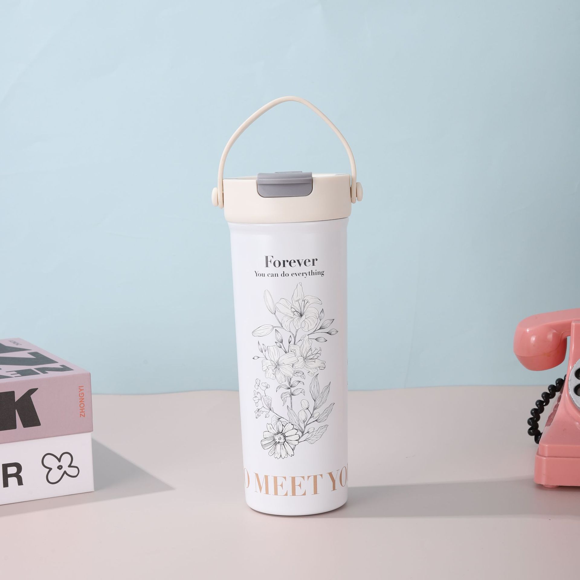Nueva Taza de Té de Flores de Aspecto Elevado Portátil para Doble Bebida Vaso de Agua para Estudiante Vaso Termo de Acero Inoxidable Separación de Agua y Té Vaso con Pajita