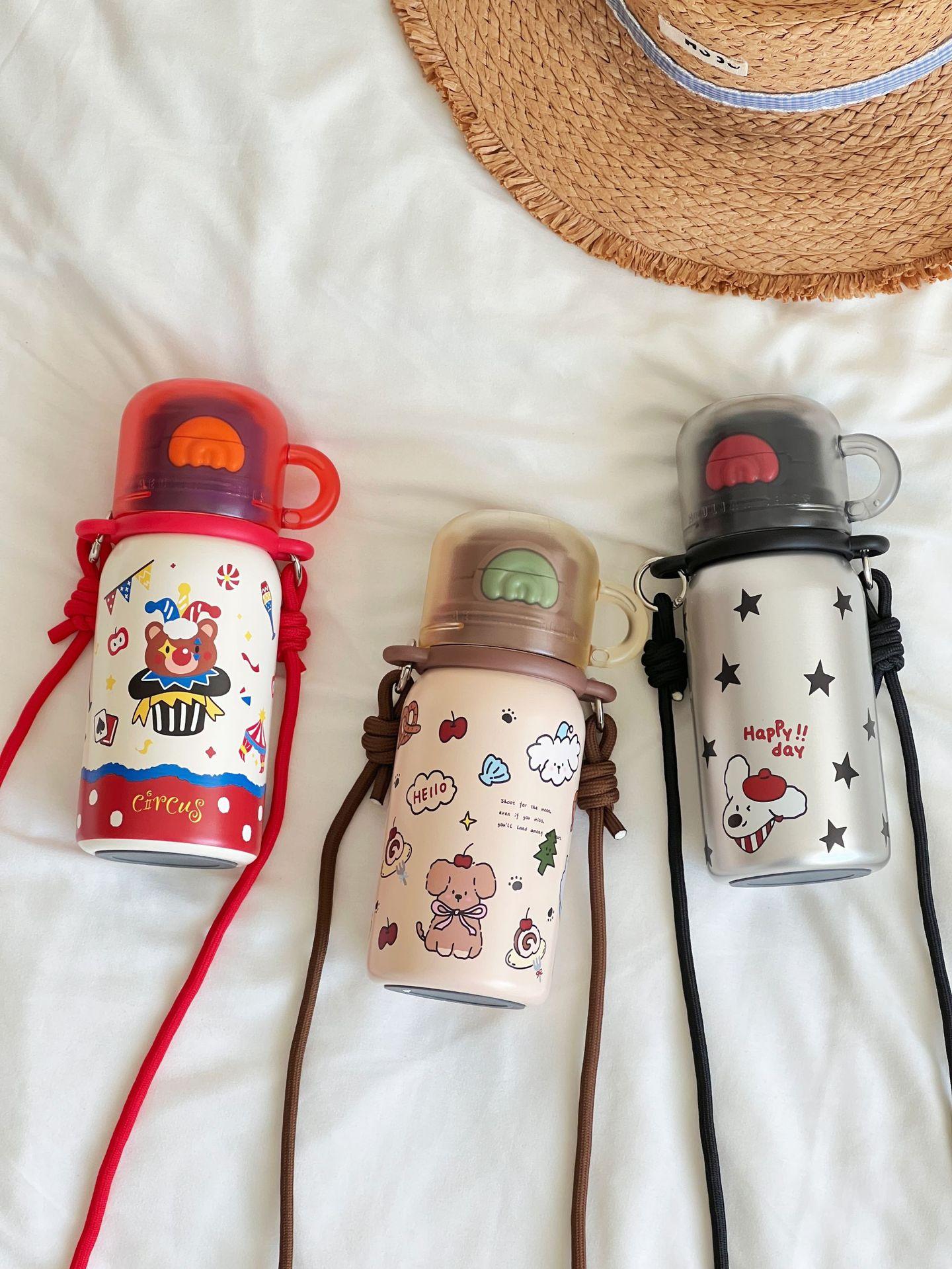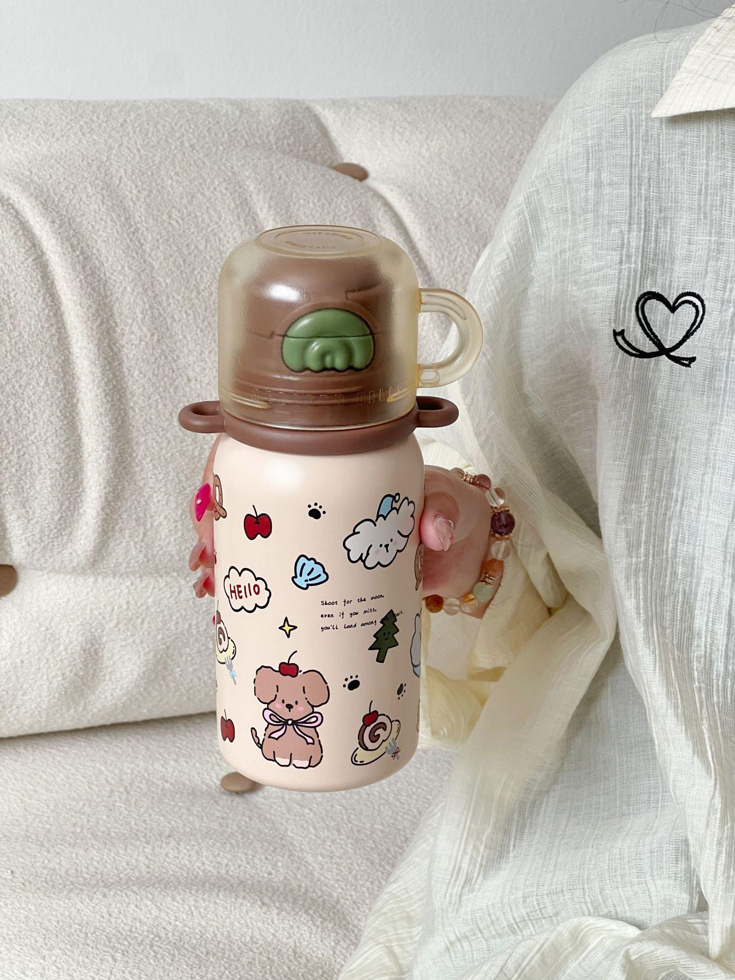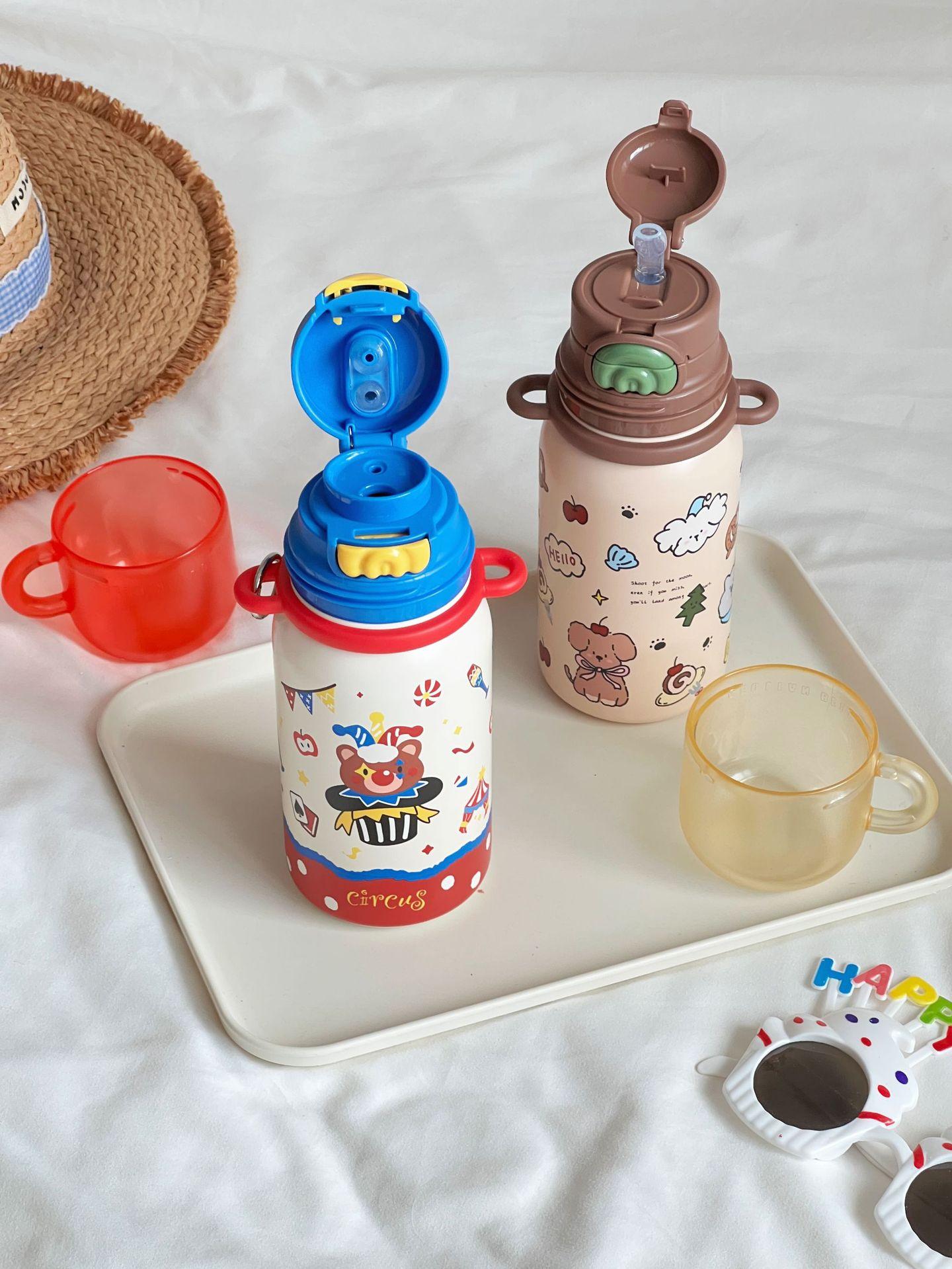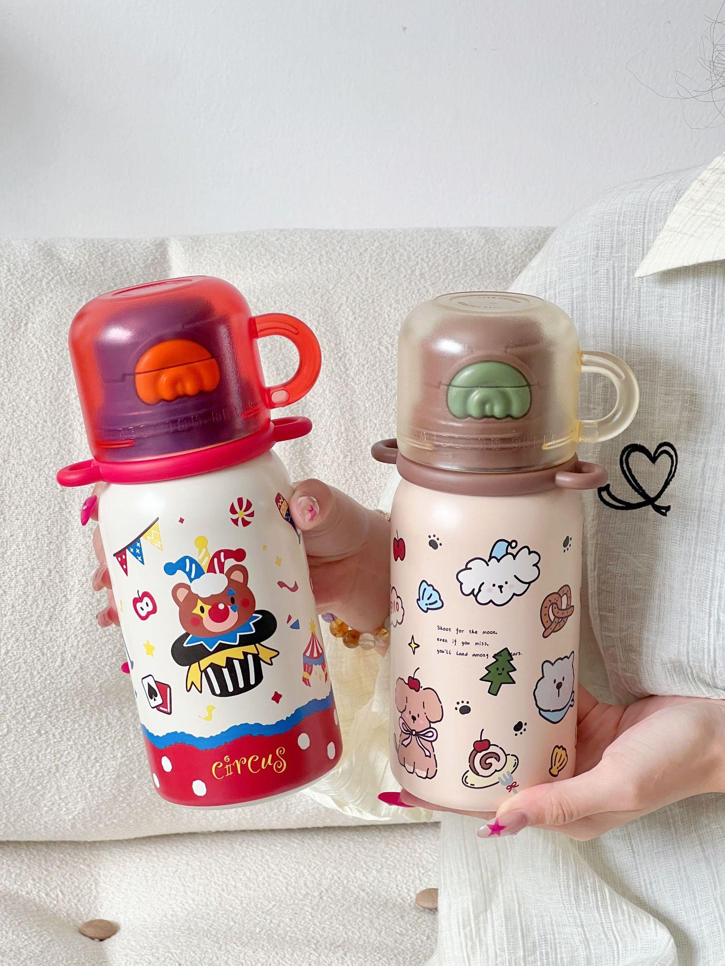 Vaso Termo de Dibujos Animados para Tres Bebidas Acero Inoxidable 316 Vacío Pajita Vaso de Agua Portátil para Exterior Doble Capa Estudiante Mochila Escolar Vaso
