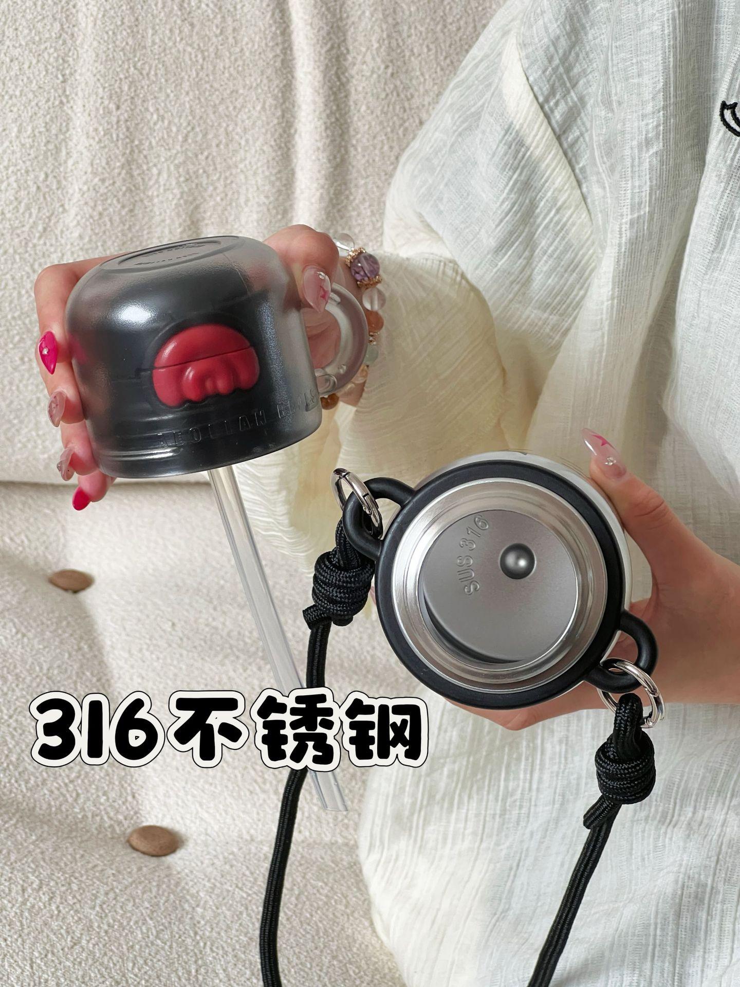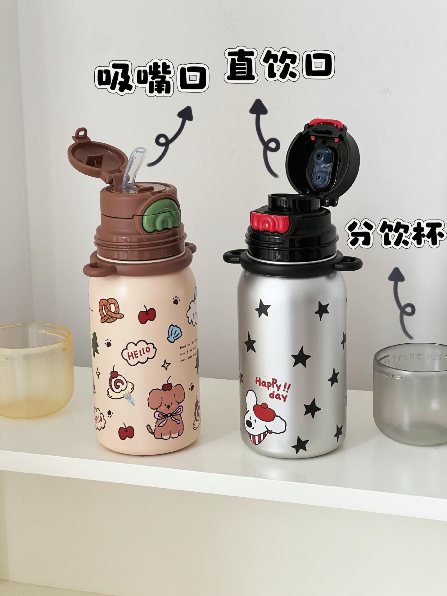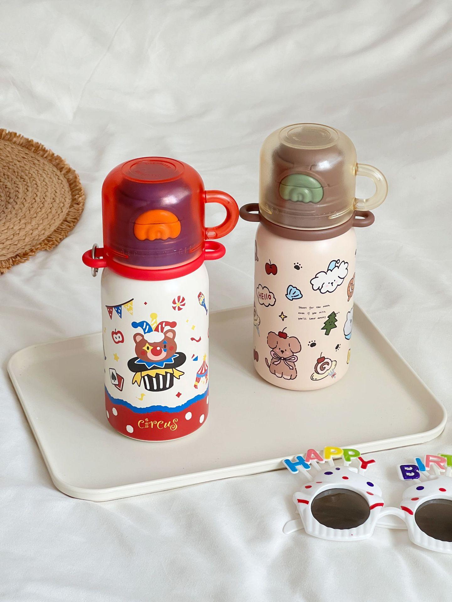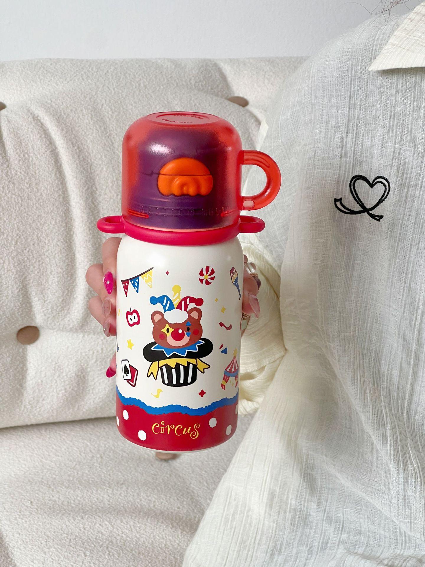 Vaso Termo de Dibujos Animados para Tres Bebidas Acero Inoxidable 316 Vacío Pajita Vaso de Agua Portátil para Exterior Doble Capa Estudiante Mochila Escolar Vaso