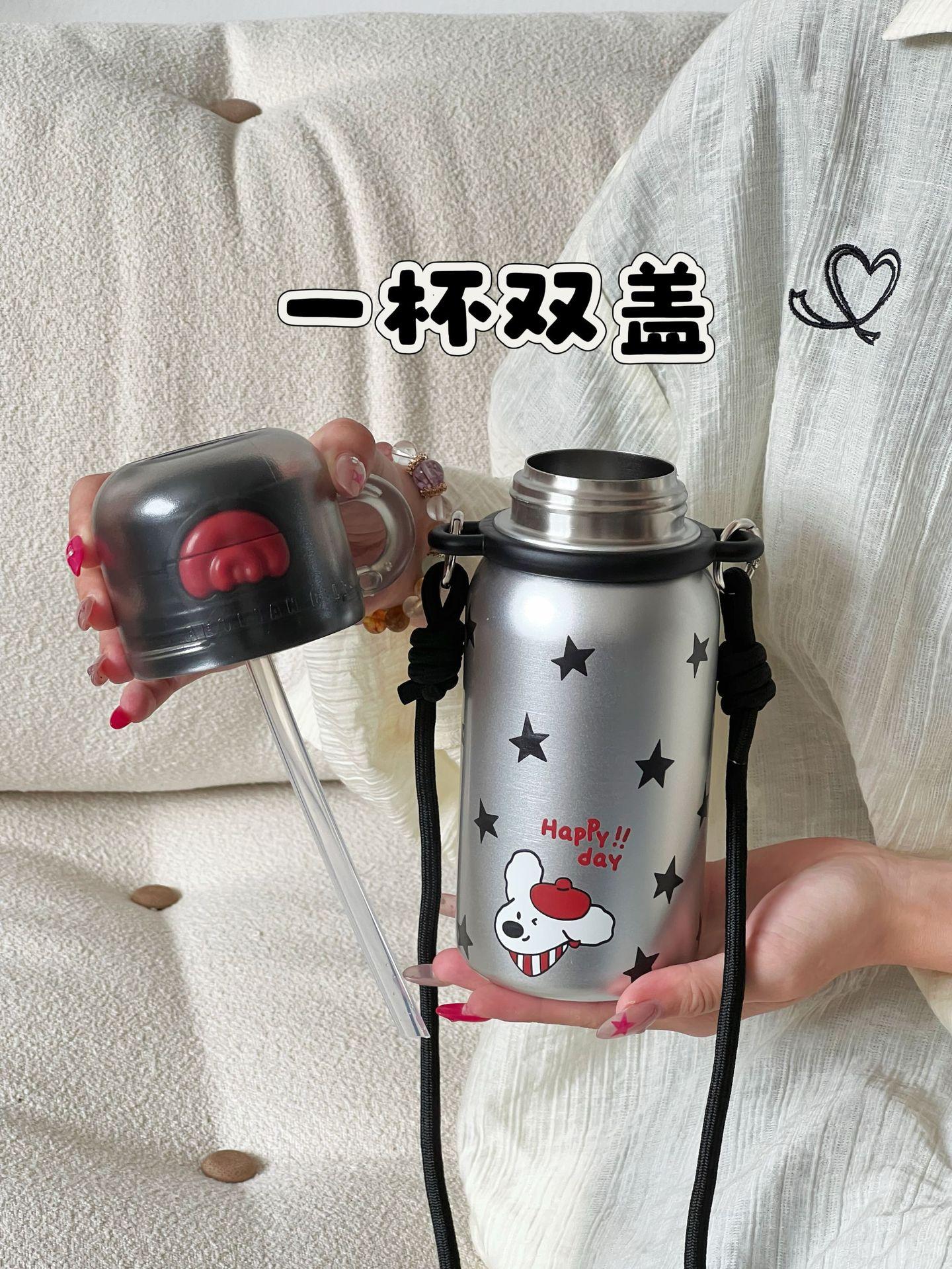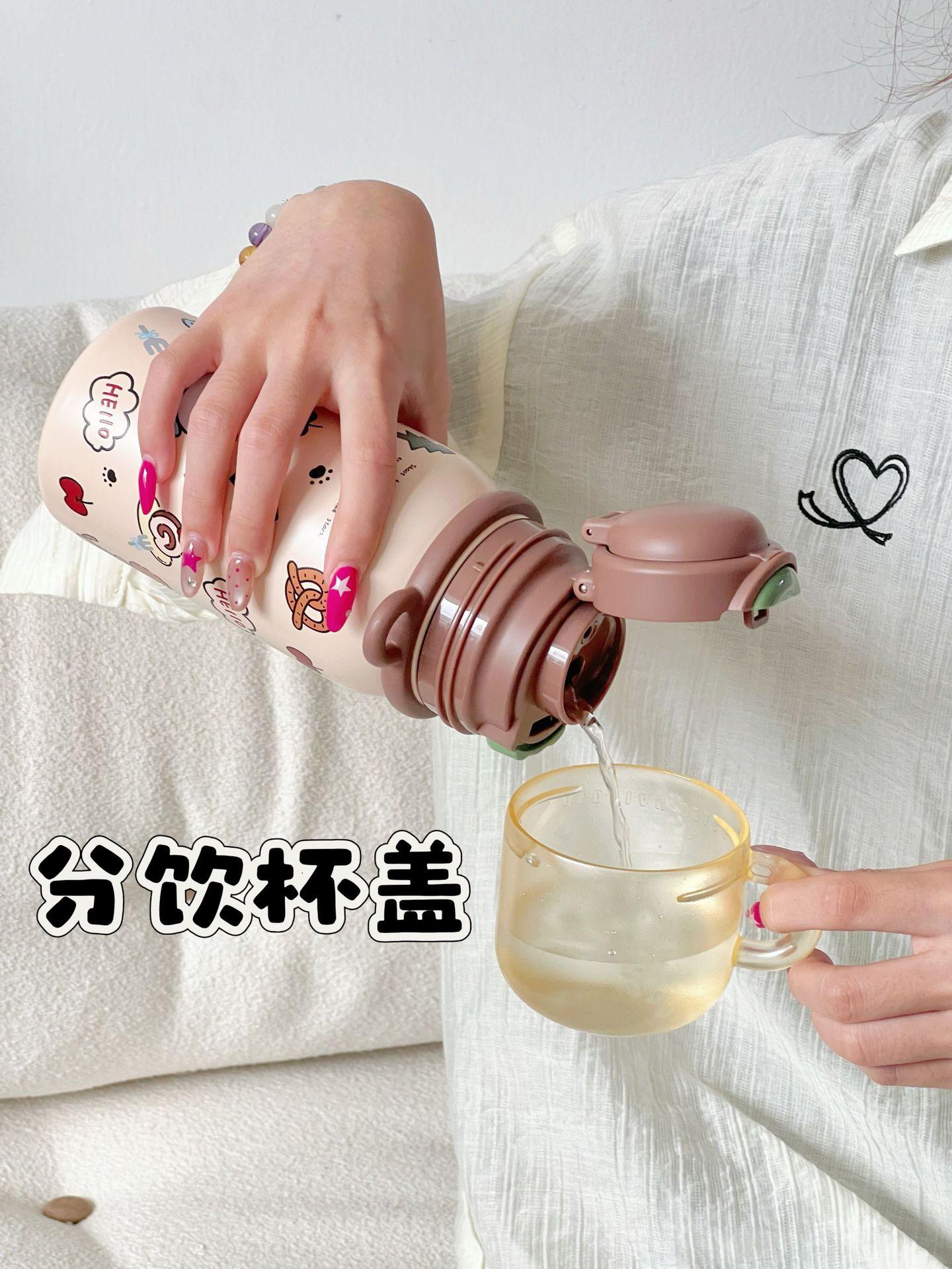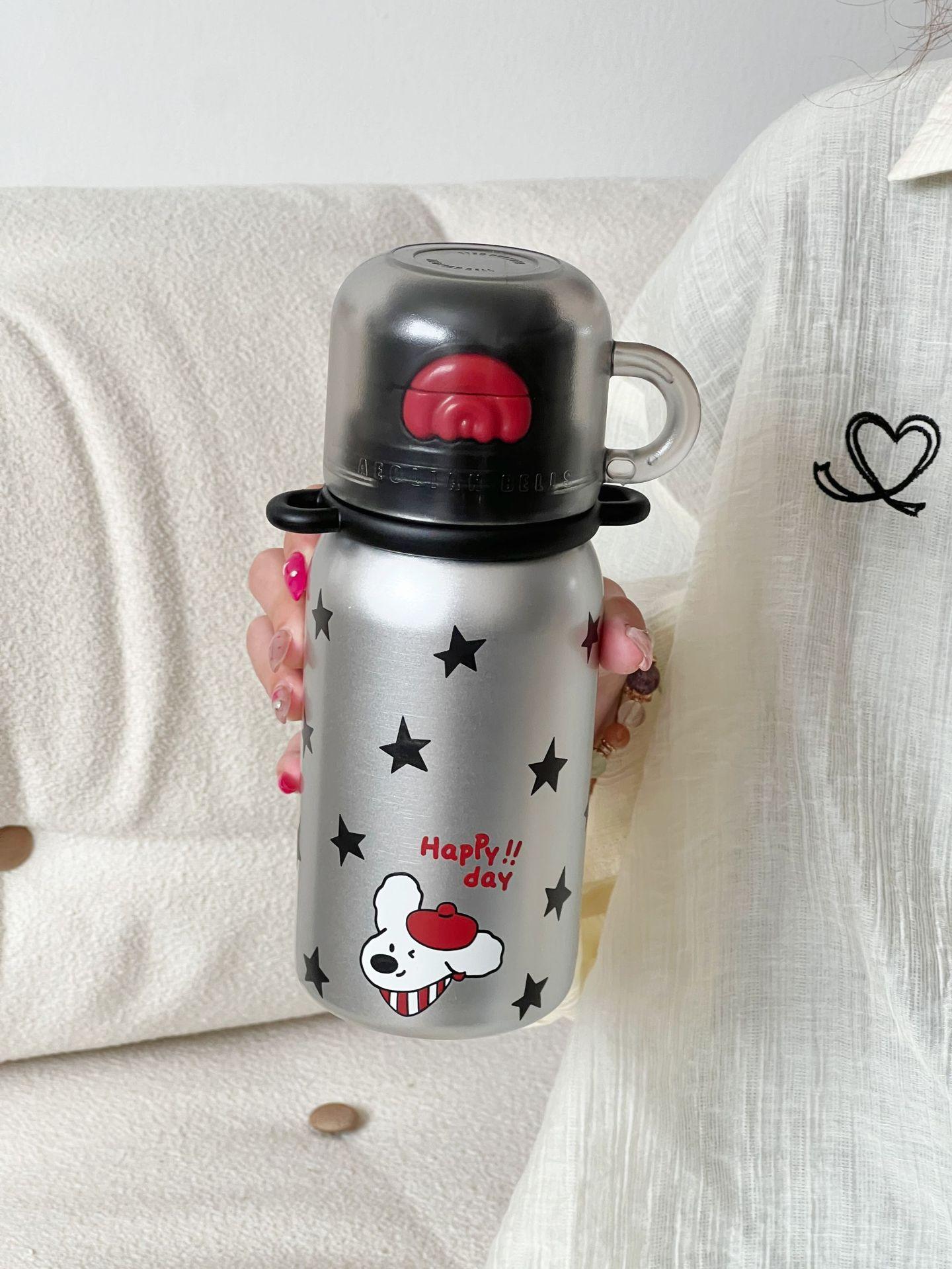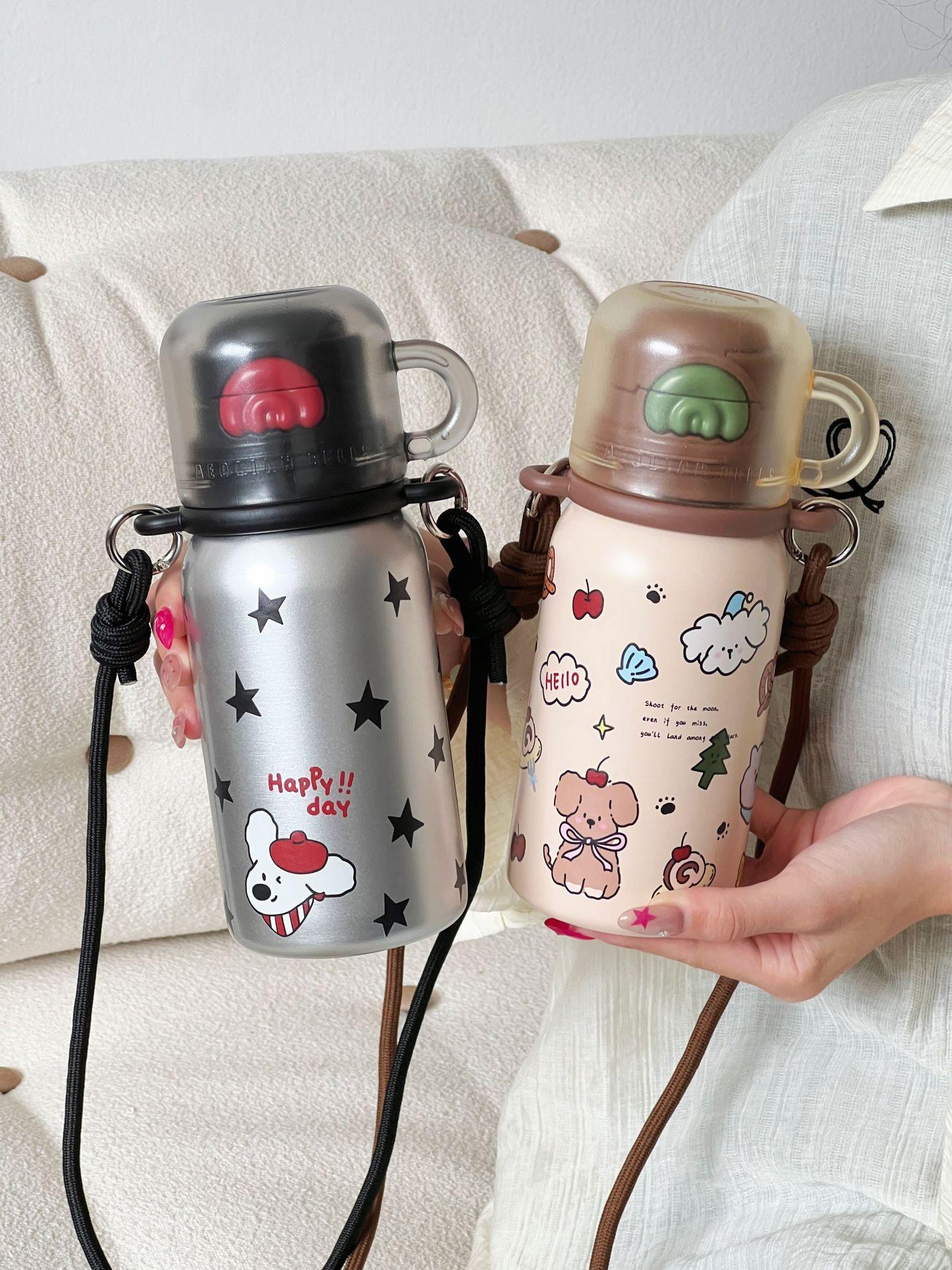 Vaso Termo de Dibujos Animados para Tres Bebidas Acero Inoxidable 316 Vacío Pajita Vaso de Agua Portátil para Exterior Doble Capa Estudiante Mochila Escolar Vaso