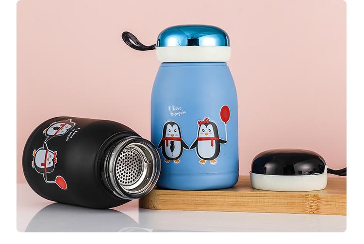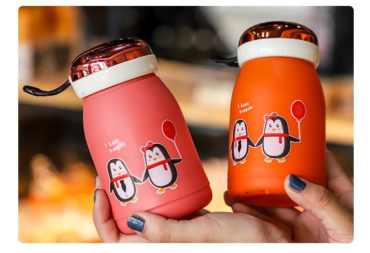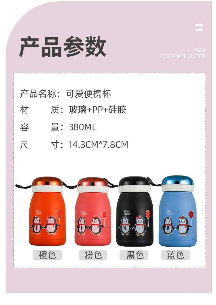 Nueva Taza de Agua de Vidrio de Pingüino de Doble Capa Diseño de Cuerda Portátil Taza de Regalo Creativa Taza Publicitaria