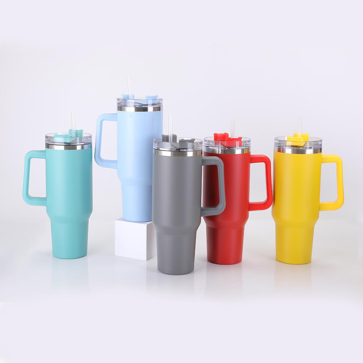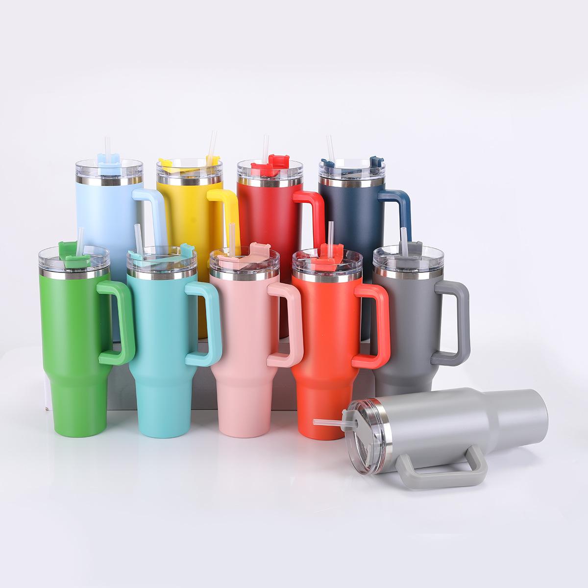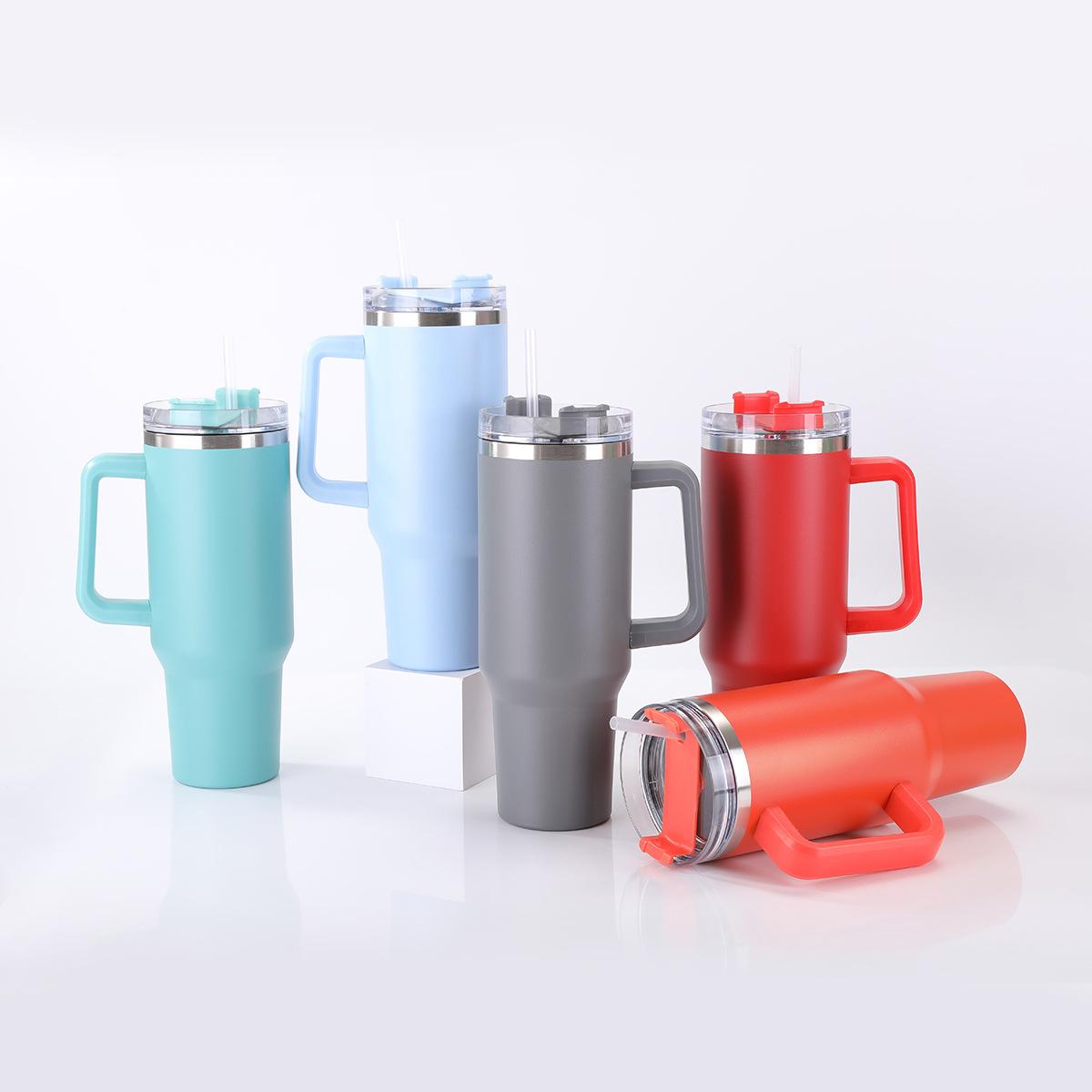 Vaso de acero inoxidable 304 con doble capa de aislamiento y pajita para exteriores, personalizado, con asa de 40 oz