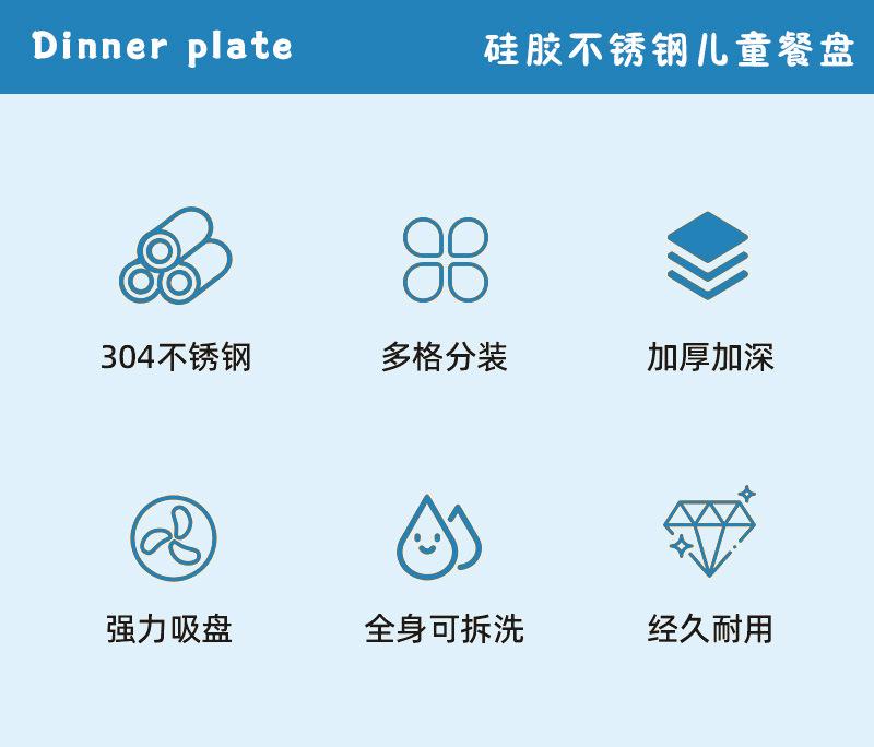 Nombre del producto: Bandeja de comida dividida de silicona [incluye tapa de ventosa de silicona]