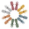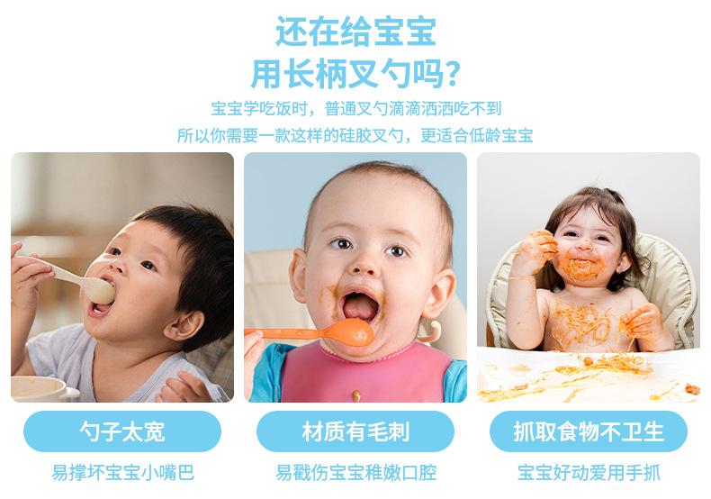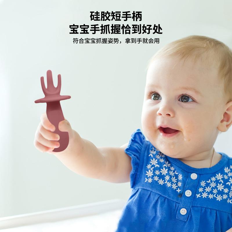 Cuchara para lamer de grado alimenticio nueva, de silicona completa, para bebé, para aprender a comer, mango corto, tenedor, cuchara, comida para bebé, cuchara suave, vajilla
