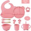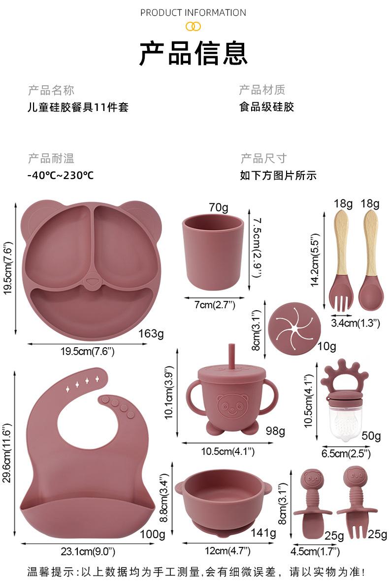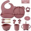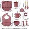 Dark pink (bib + ear plate + double-eared bowl + wooden fork + bear fork + bear cup + snack lid + crown bite + straight cup 720g)