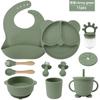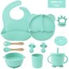 Mint green (bib + ear dinner plate + double ear bowl + wooden fork + bear fork + bear cup + snack lid + crown ...
