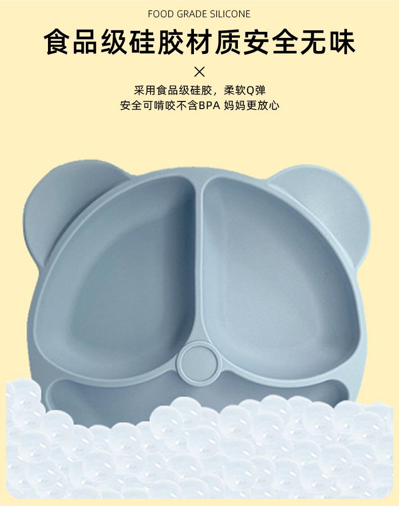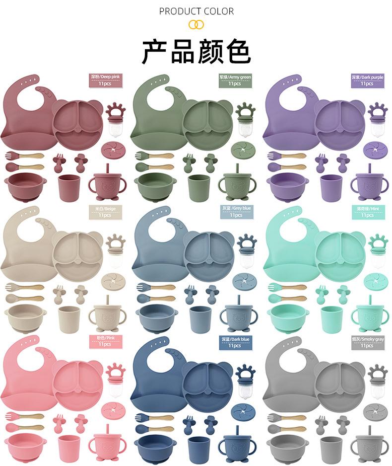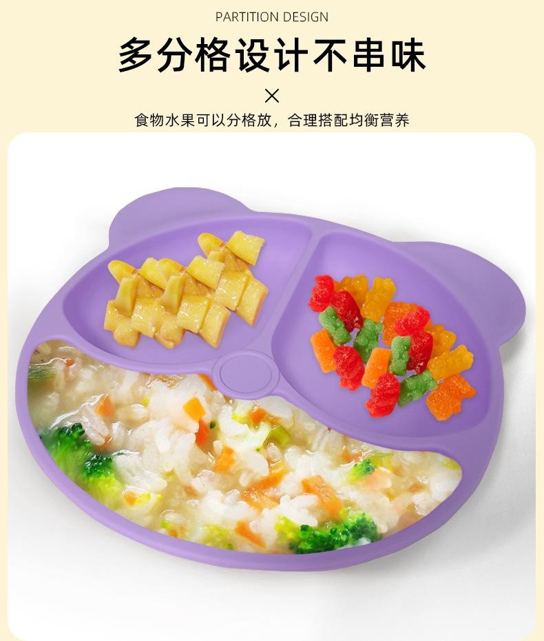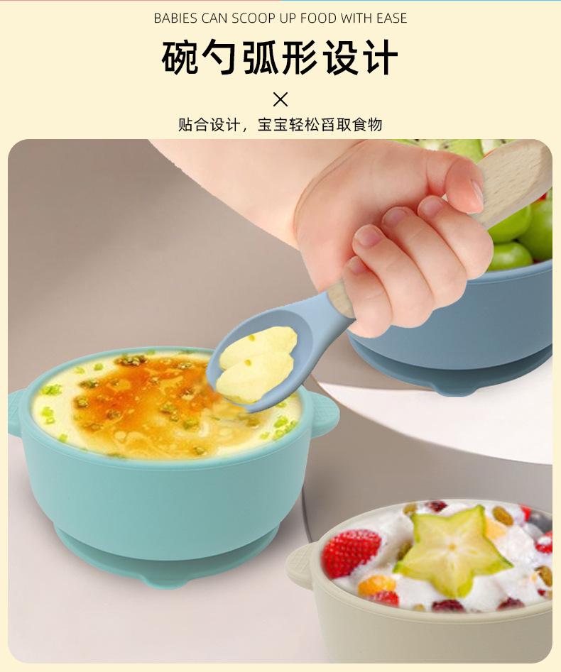 Juego de vajilla de silicona para niños transfronterizo plato de silicona de dibujos animados ventosa tazón para comida de bebé tenedor cuchara