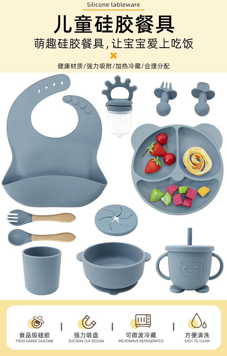 Dark blue (bib + ear plate + double-eared bowl + wooden fork + bear fork + bear cup + snack lid + crown bite + straight cup 720g)