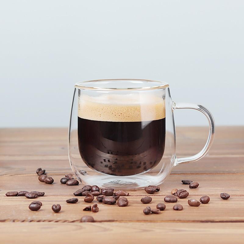Taza de Café de Vidrio Transparente de Doble Capa Personalizada para el Hogar Resistente al Calor de Alto Borosilicato Vaso de Agua Simple Aislado Taza para Leche con Asa