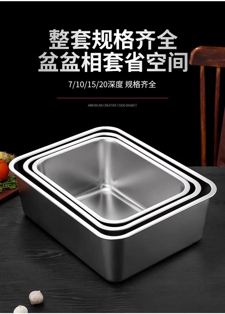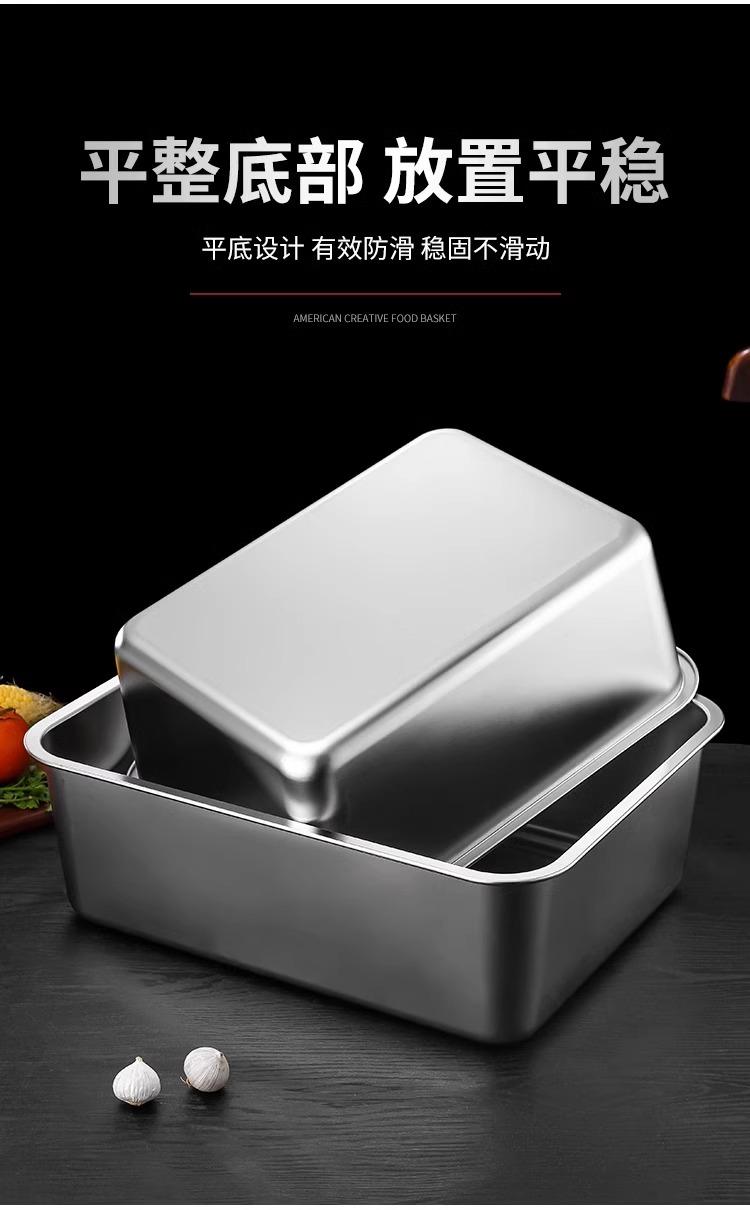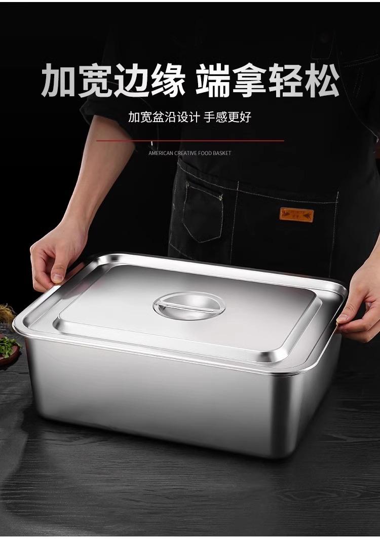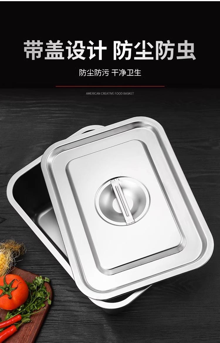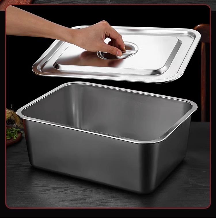 Lavabo cuadrado de acero inoxidable 304 de grado alimenticio con tapa, plato rectangular cuadrado, bandeja profunda para bufé, recipiente para comida rápida