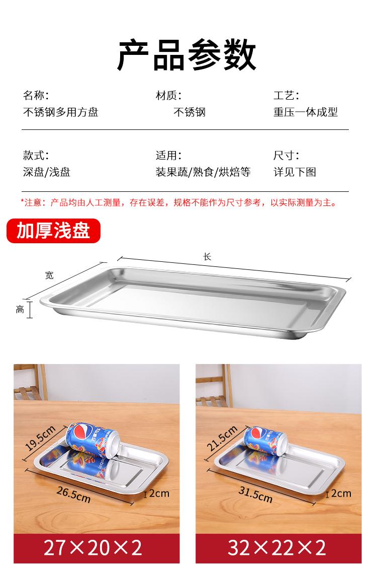 Plato Cuadrado de Material 201 Plato de Acero Inoxidable Plato Rectangular para Arroz al Vapor Plato para Pescado Horno Plato para Cena Plato Bandeja de Acero Inoxidable