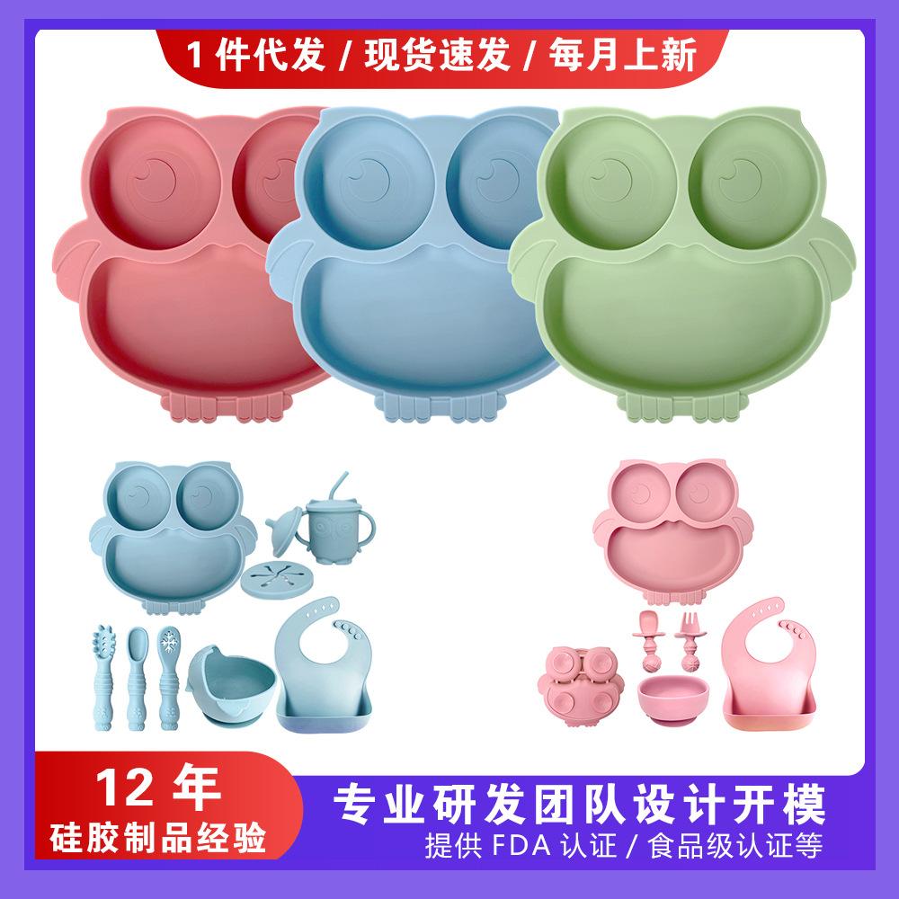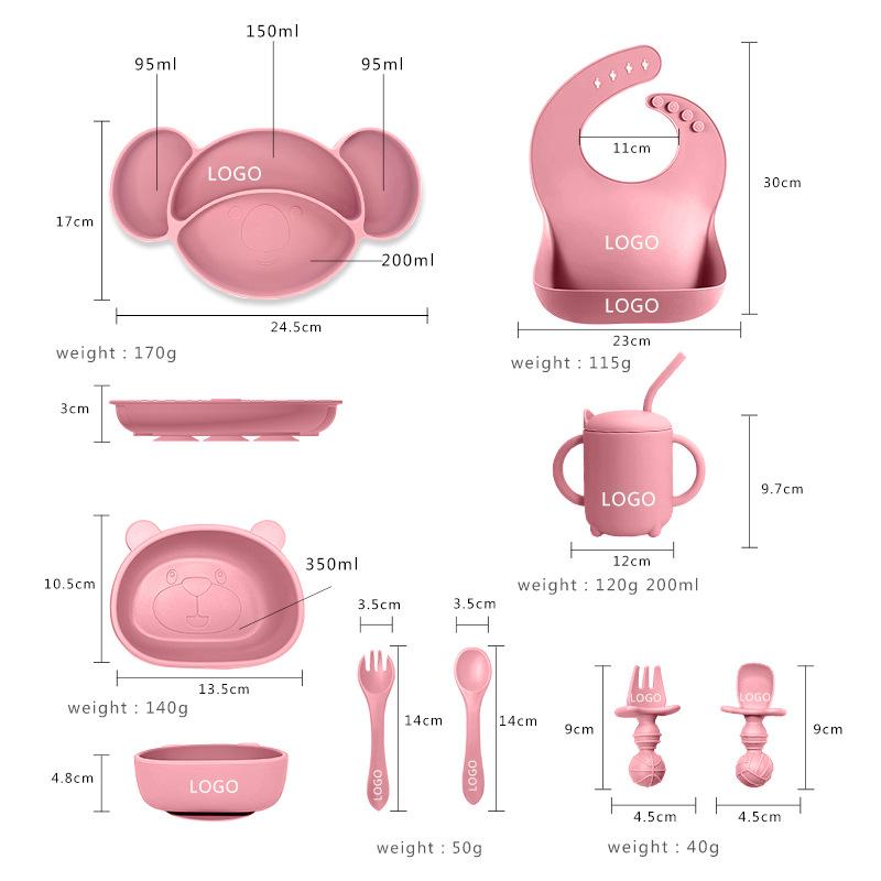 Vajilla Infantil Tazón para Alimentos Complementarios Tenedor Cuchara Plato de Silicona Set de 8 Piezas Suministros para Madre y Bebé Set de Plato Infantil de Koala