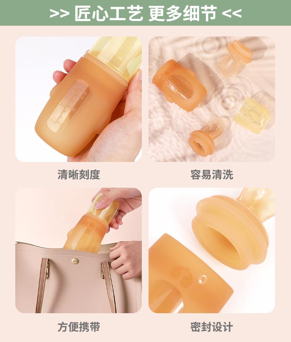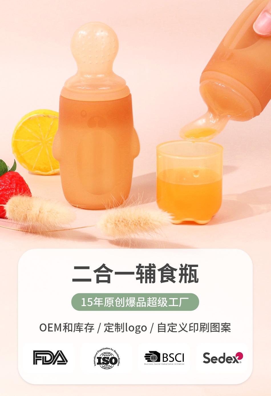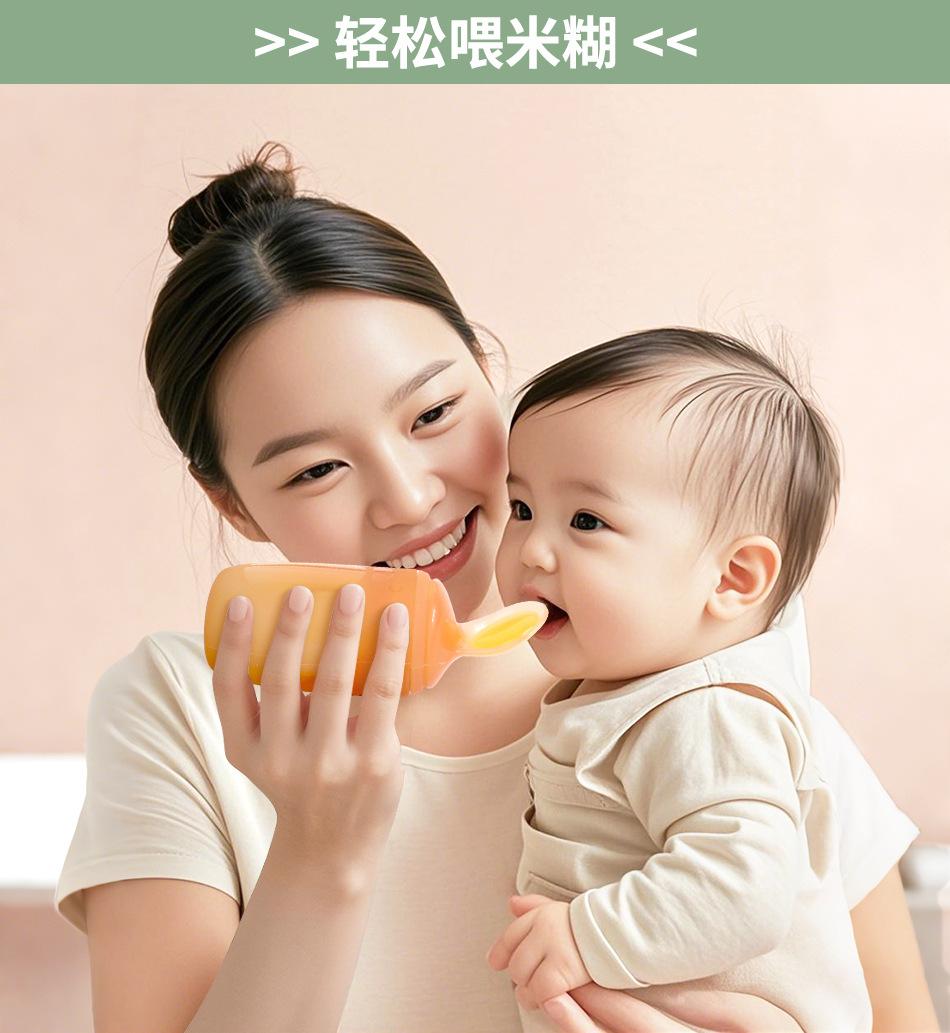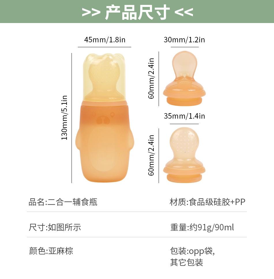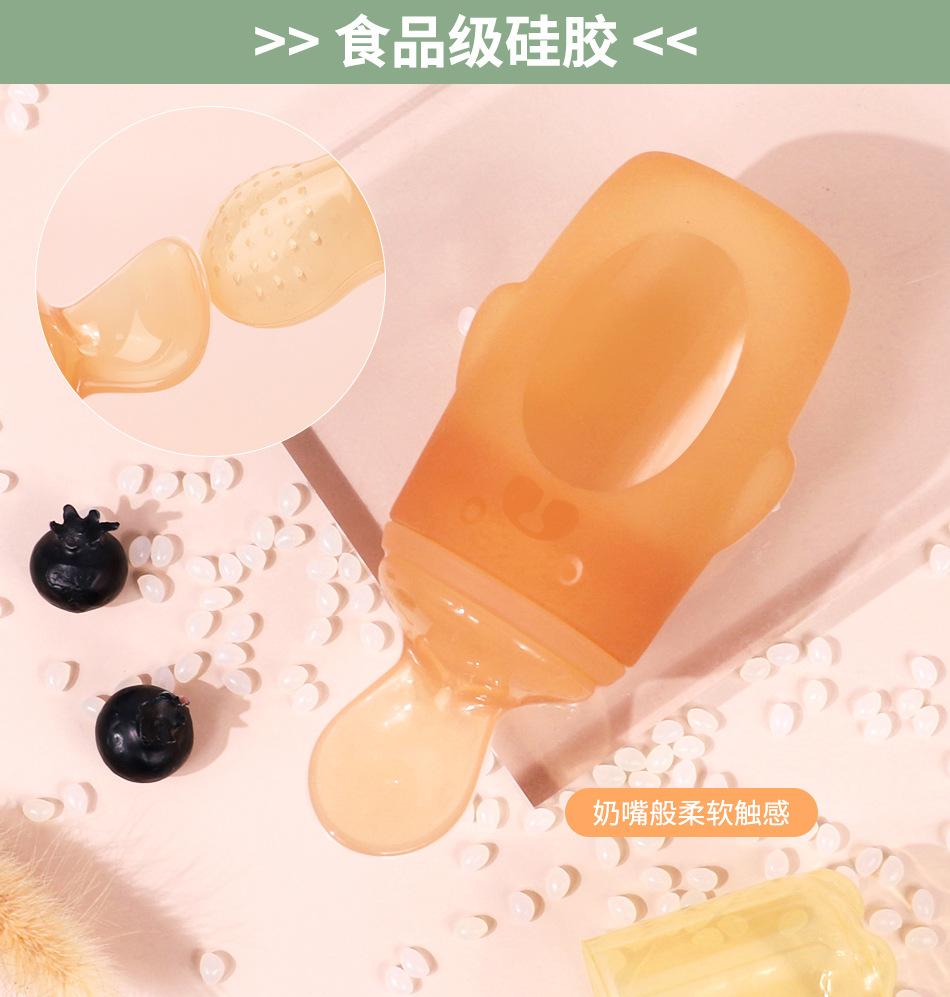 Cuchara de cereal de arroz personalizada para bebé, biberón de leche de silicona marrón, cuchara suave para comer, accesorio para morder y fruta.