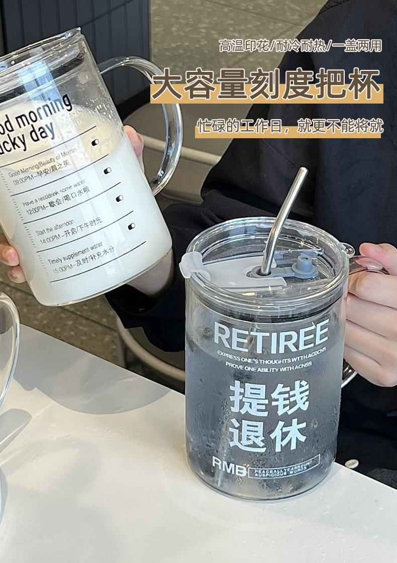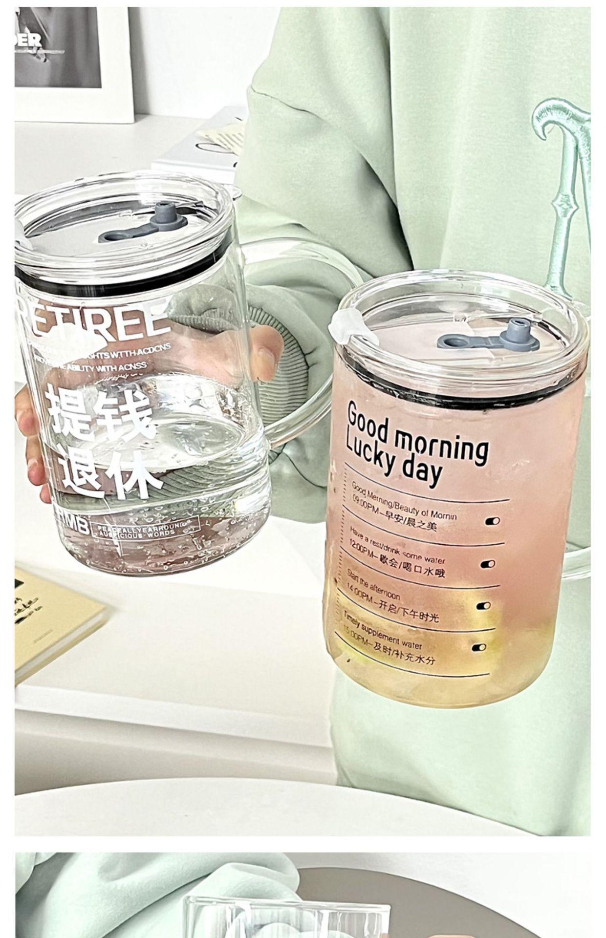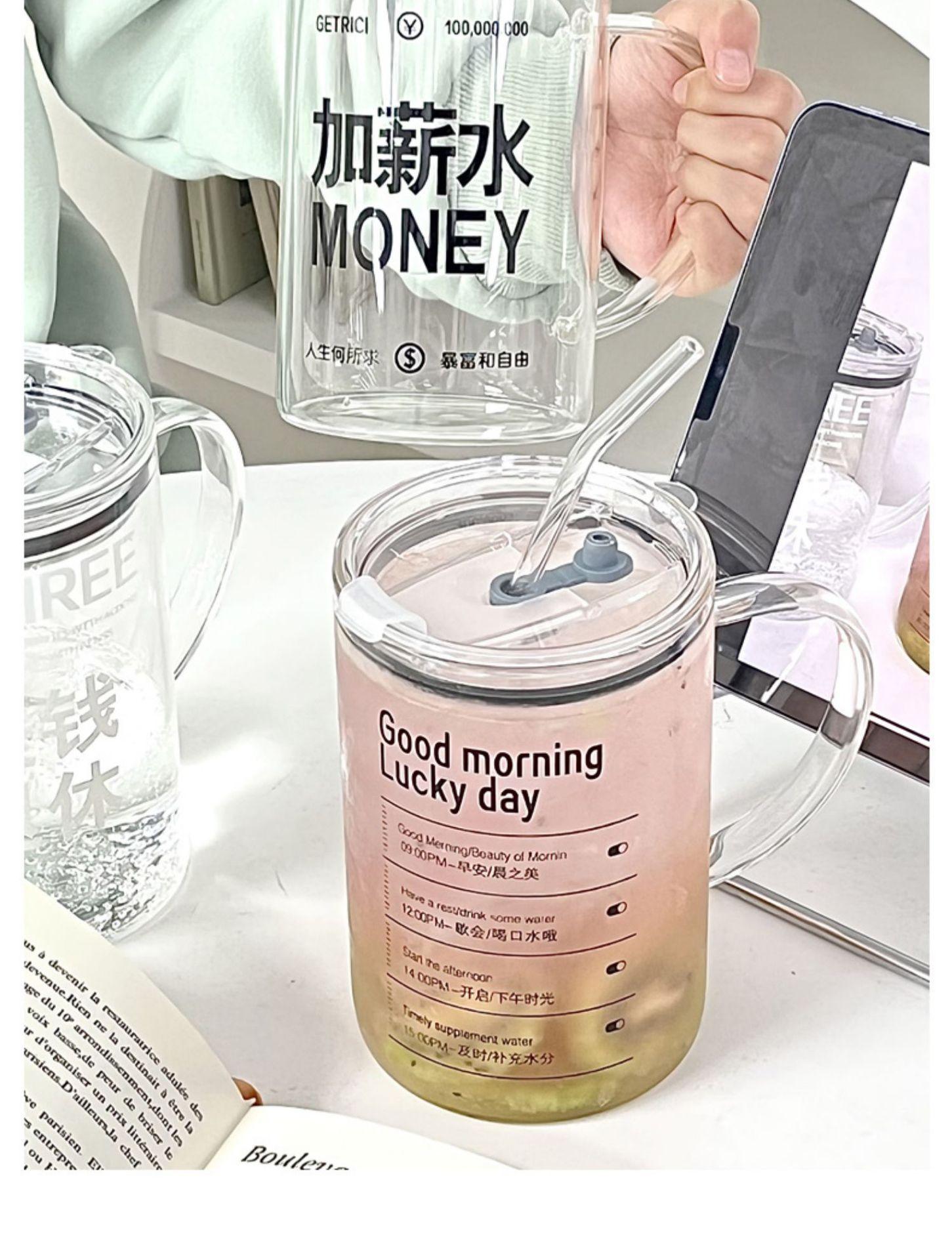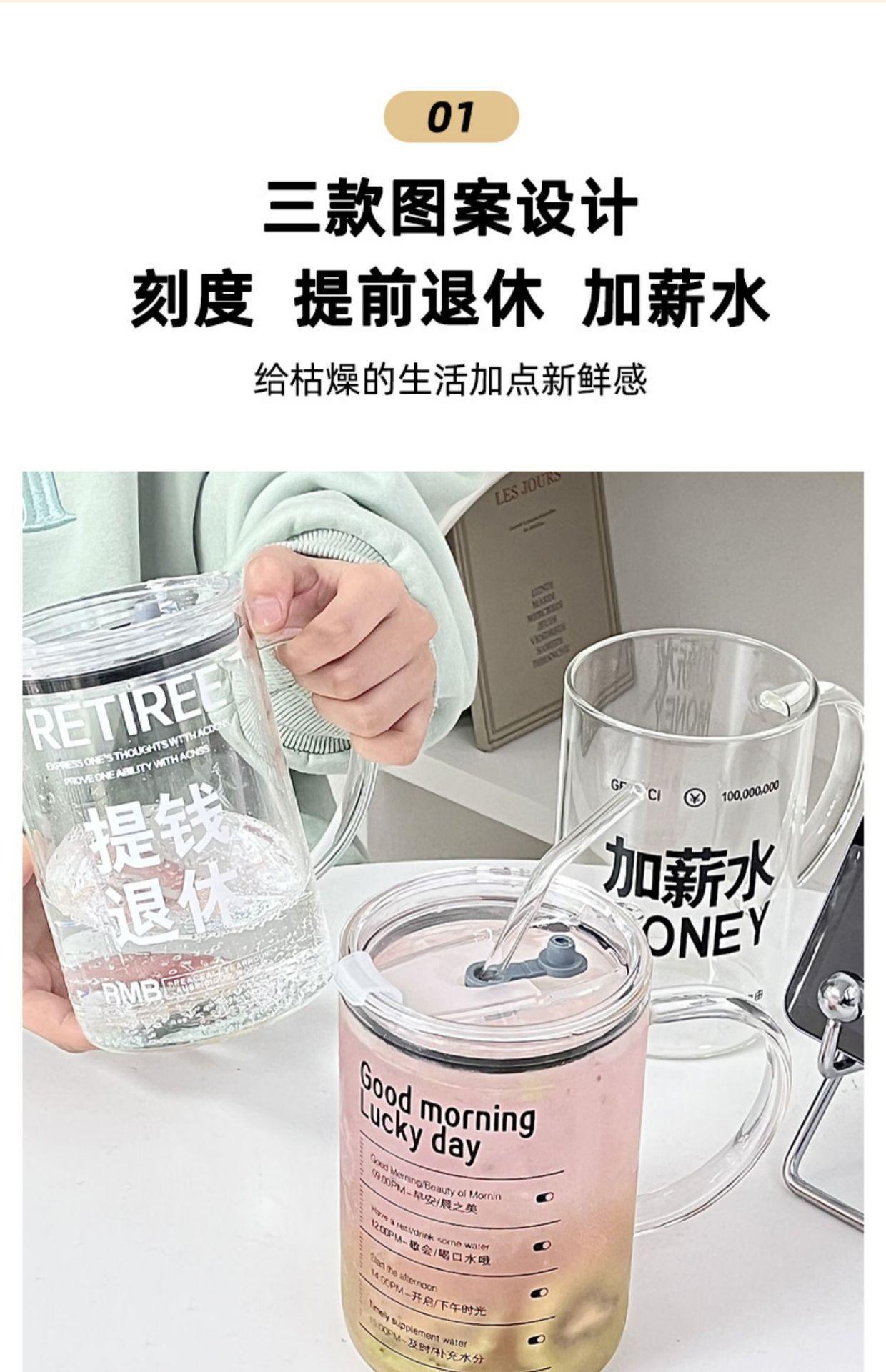 Taza Resistente a Altas Temperaturas Taza de Oficina con Asa Capacidad Extra Grande Vidrio Dormitorio 1L Taza para Beber Vaso con Pajita de Alto Borosilicato