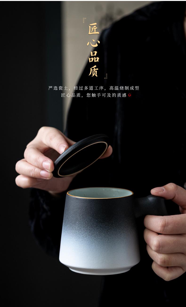 Taza de té de cerámica degradada en blanco y negro con tapa, filtro, taza para separación de té, taza de oficina, taza para agua, taza para el hogar