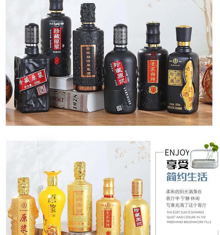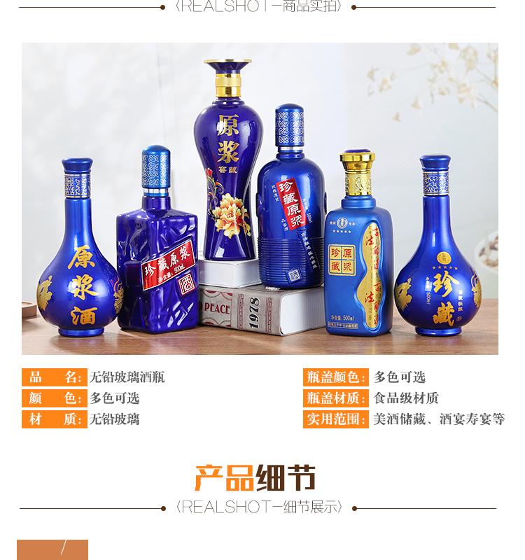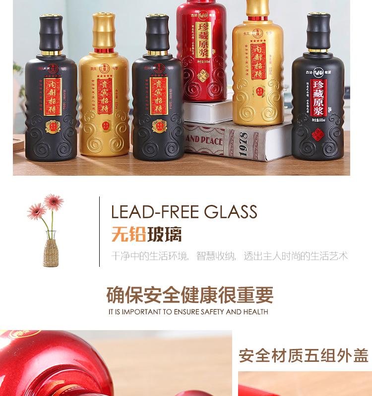 Botella de licor nueva 0.50kg Vidrio Botella de vino vacía Colección Puré Botella vacía Caja de vino Seis botellas Paquete completo