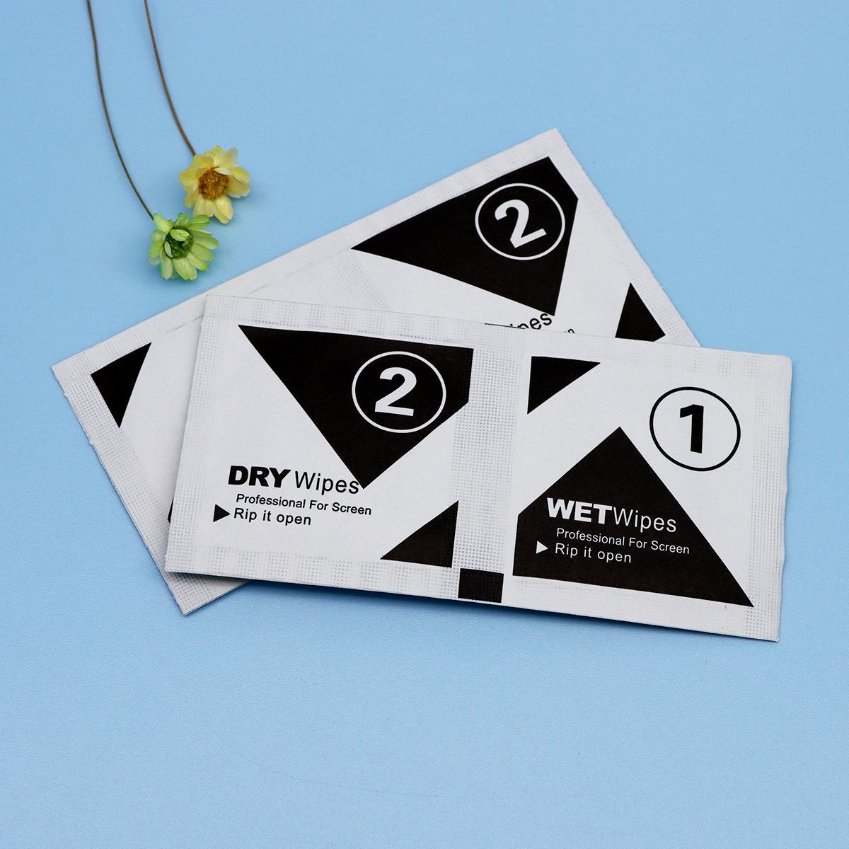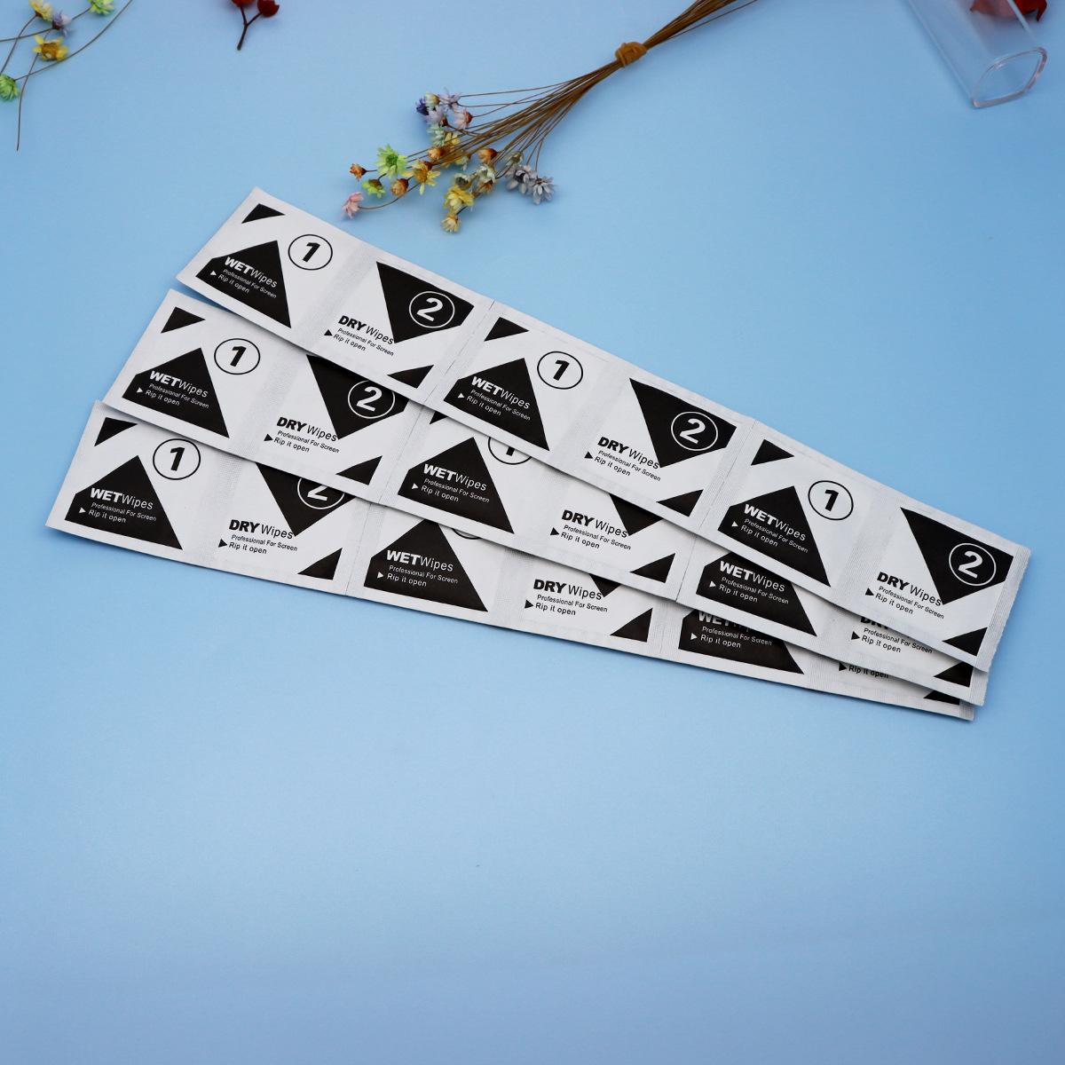①Almohadilla de alcohol en blanco y negro de 5*5 cm en inglés material 1+2A