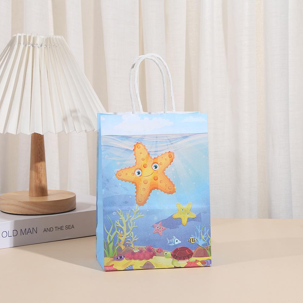 Bolsa tote de la serie Océano, bolsa de regalo para fiesta, bolsa de embalaje con logo impreso, bolsa de papel kraft al por mayor, bolsa de compras
