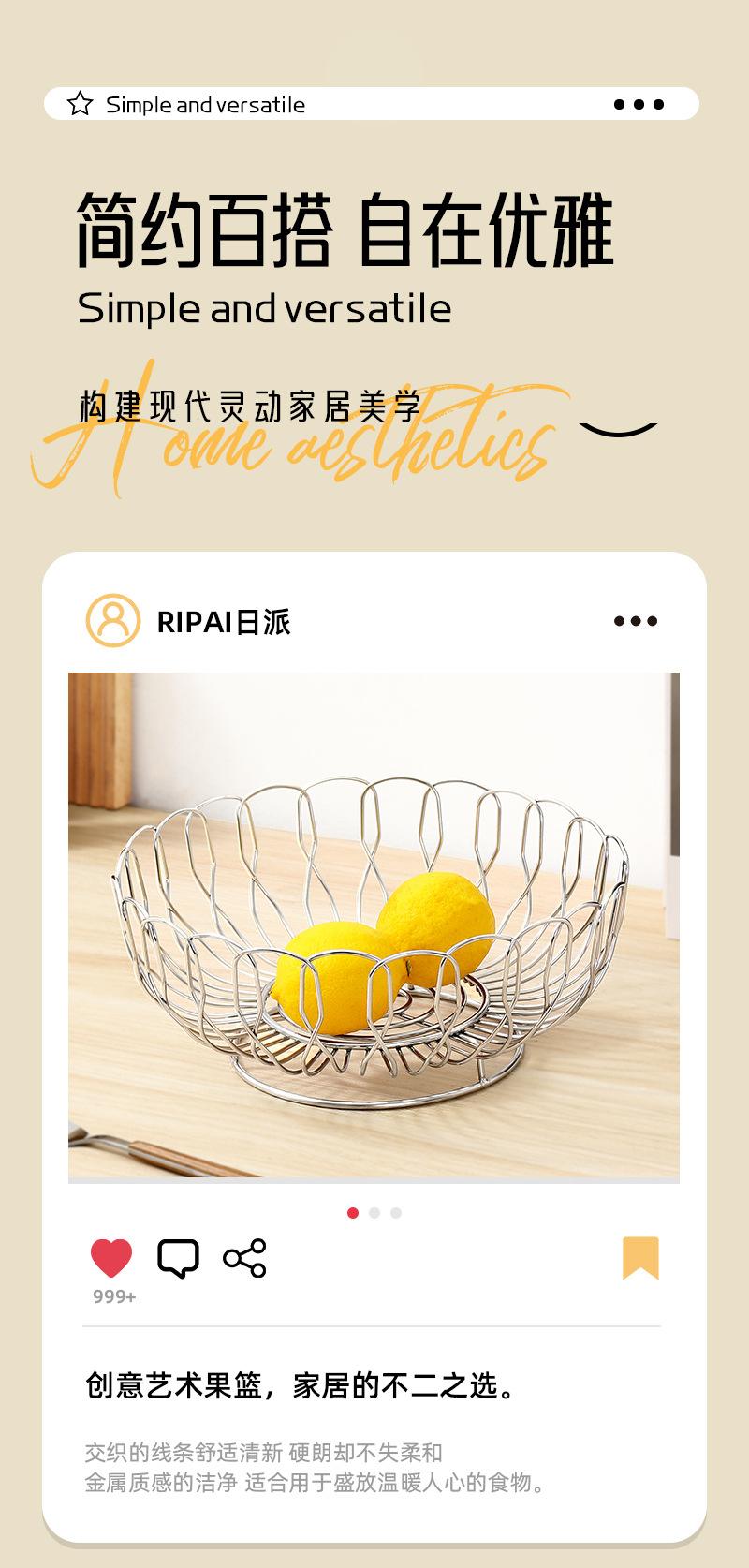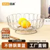 Cesta de Almacenamiento de Fruta de Acero Inoxidable Estilo Japonés Plato de Fruta Nórdico Hueco para Snacks Cesta para Frutas y Verduras Cesta de Drenaje Adornos Simples