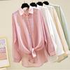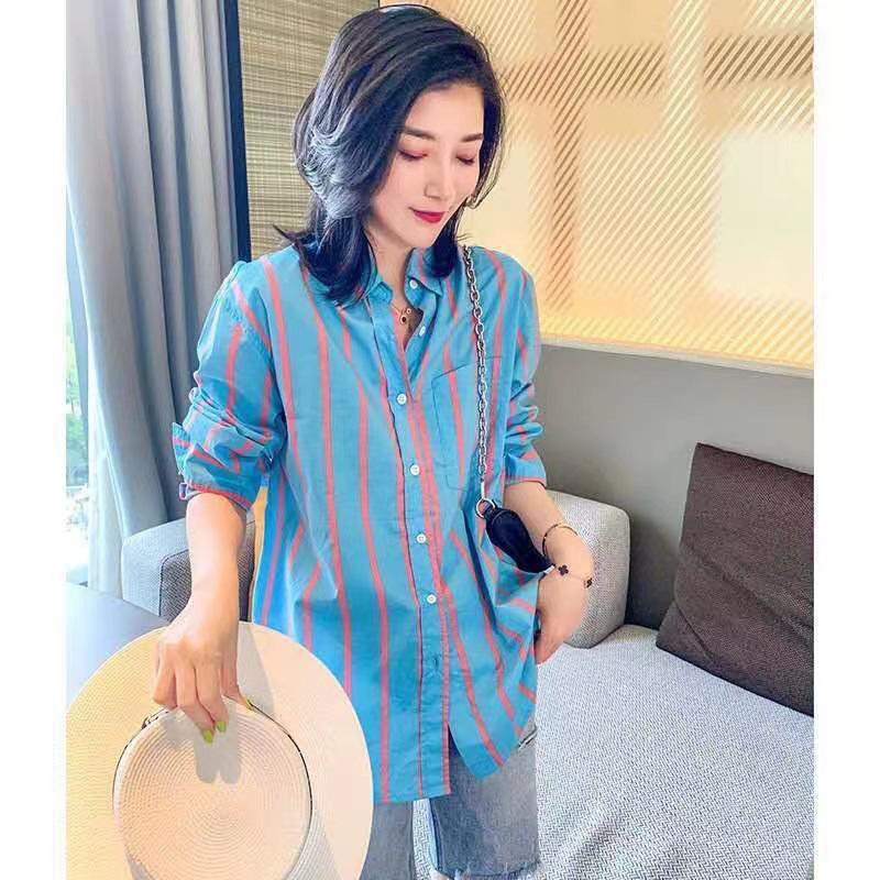 Camisa a Rayas Azules para Mujer 2025 Estilo Verano Camisa Nueva Protección Solar Manga Larga Ropa Exterior Top Interior de Otoño para Mujer