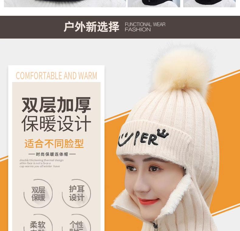 Sombrero de Viaje para Exterior Sombrero Cálido de Otoño e Invierno para Mujer Sombrero de Lana con Felpa Bufanda Bufanda para el Cuello Ciclismo Protección para las Orejas Sombrero de Punto