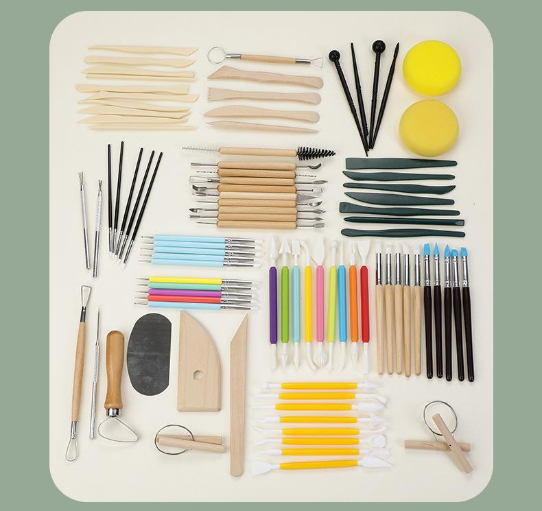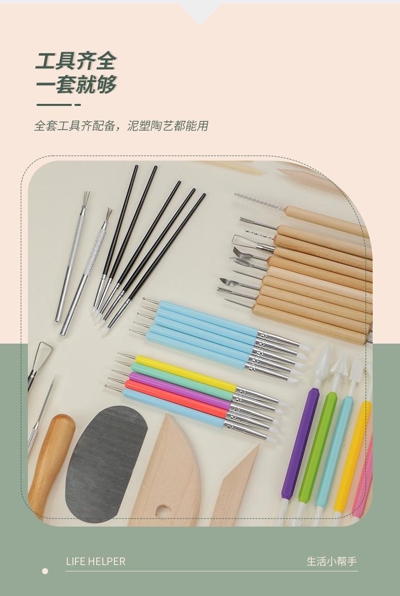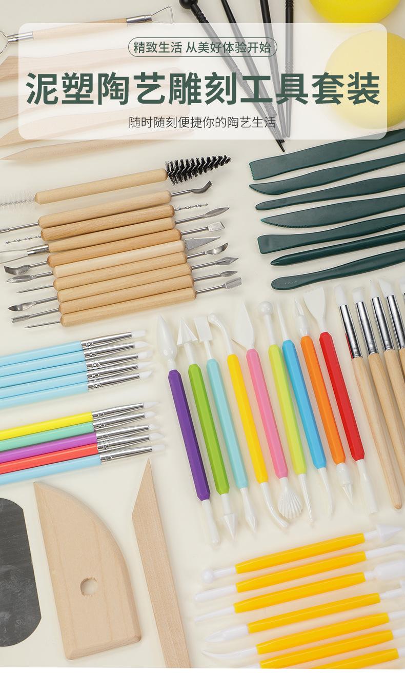 Plastic Carving Knife 14-Piece Set (Yellow), Pottery Tool Set 41 Pieces, Silicone Impression Pen 5-Piece Set, ...