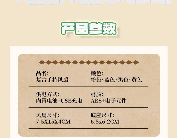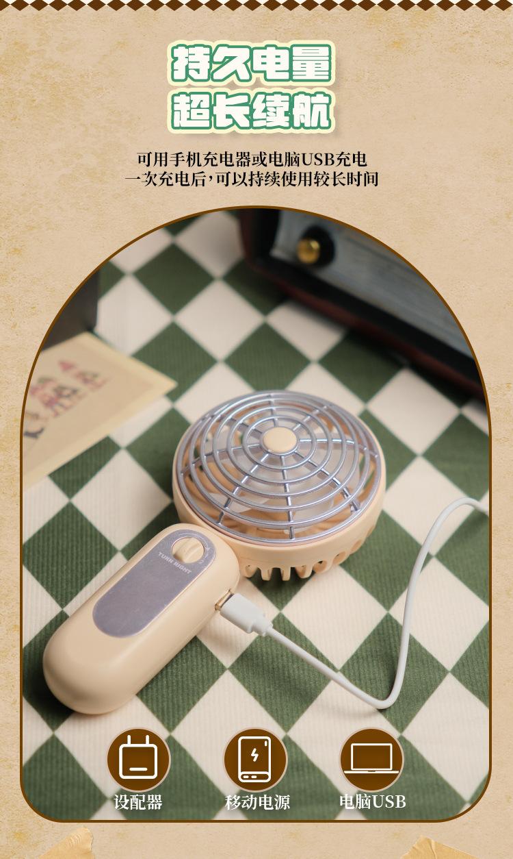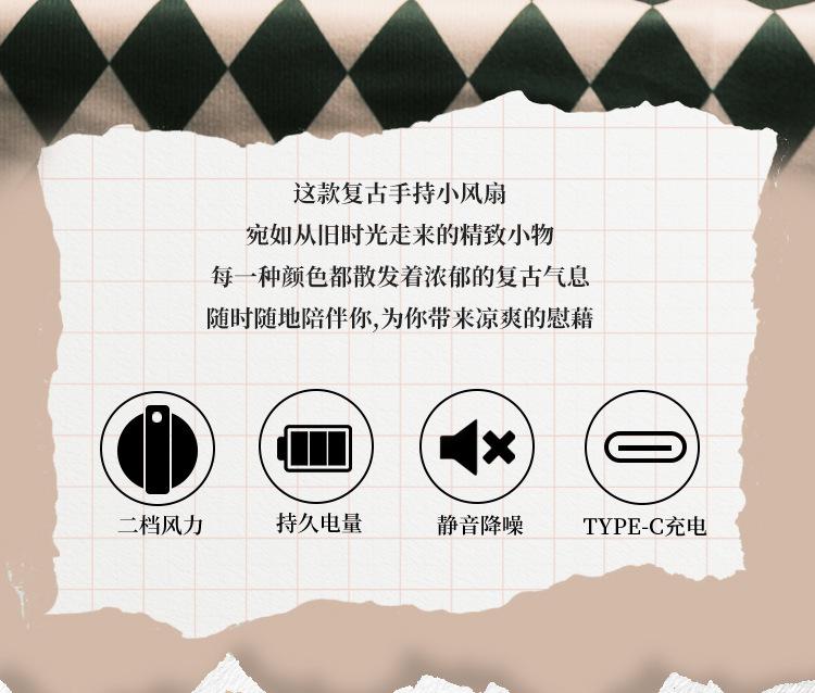Ventilador pequeño retro transfronterizo portátil de mano recargable USB de escritorio mini ventilador viento fuerte de dos velocidades