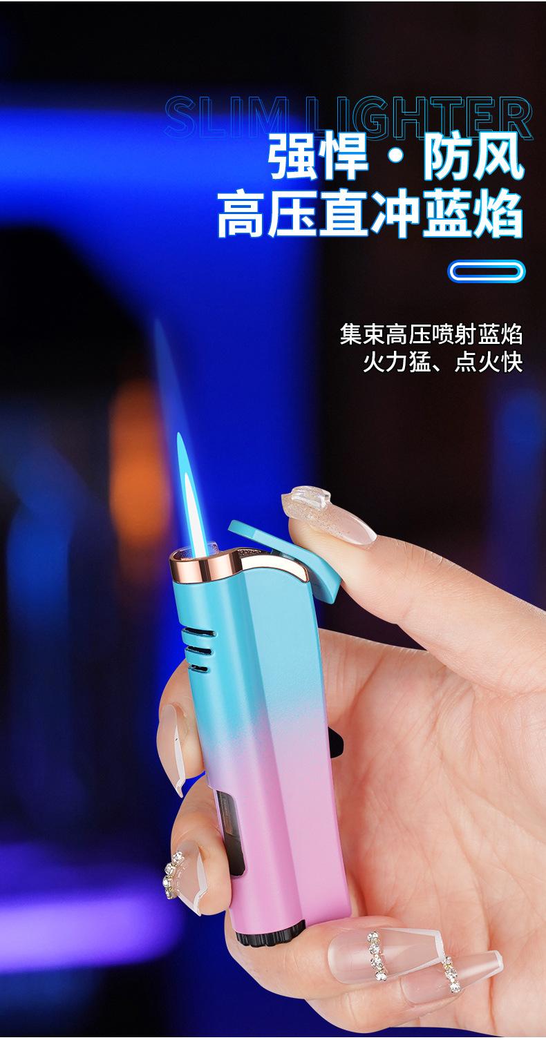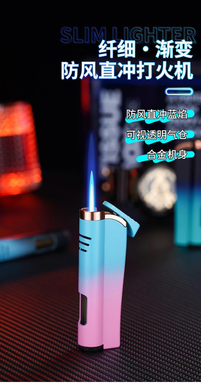 Encendedor de Metal Inflable Llama Azul a Prueba de Viento Ventana de Aire Visual Moda Degradado Ligero Portátil Transfronterizo