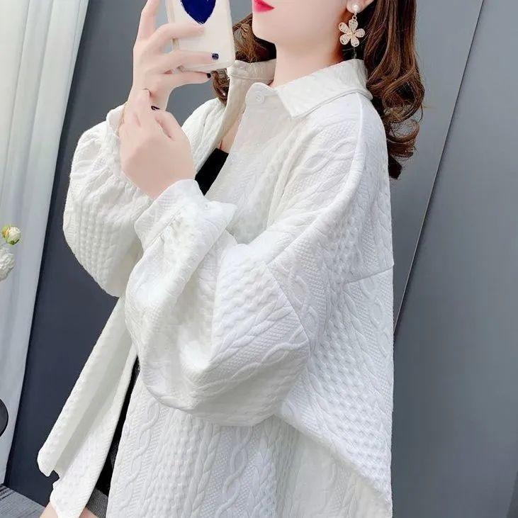 Nueva Camisa de Moda Retro Versátil Holgada Casual Chaqueta Mujer Primavera Otoño Sentido del Diseño Manga Larga Camisa Gruesa Ropa Exterior