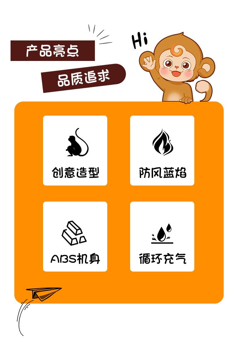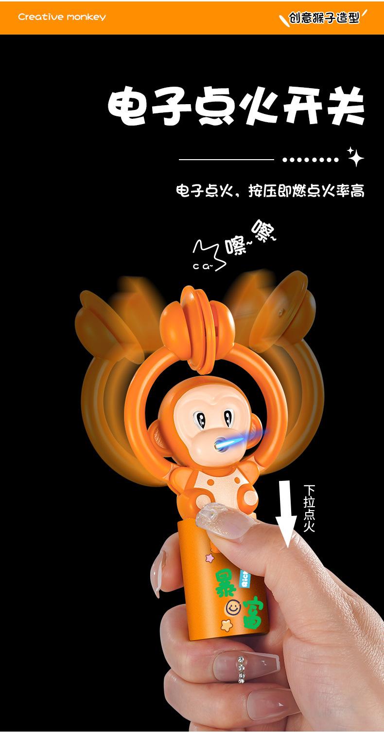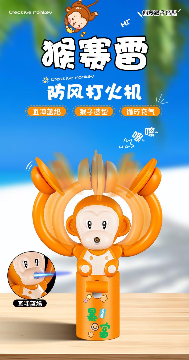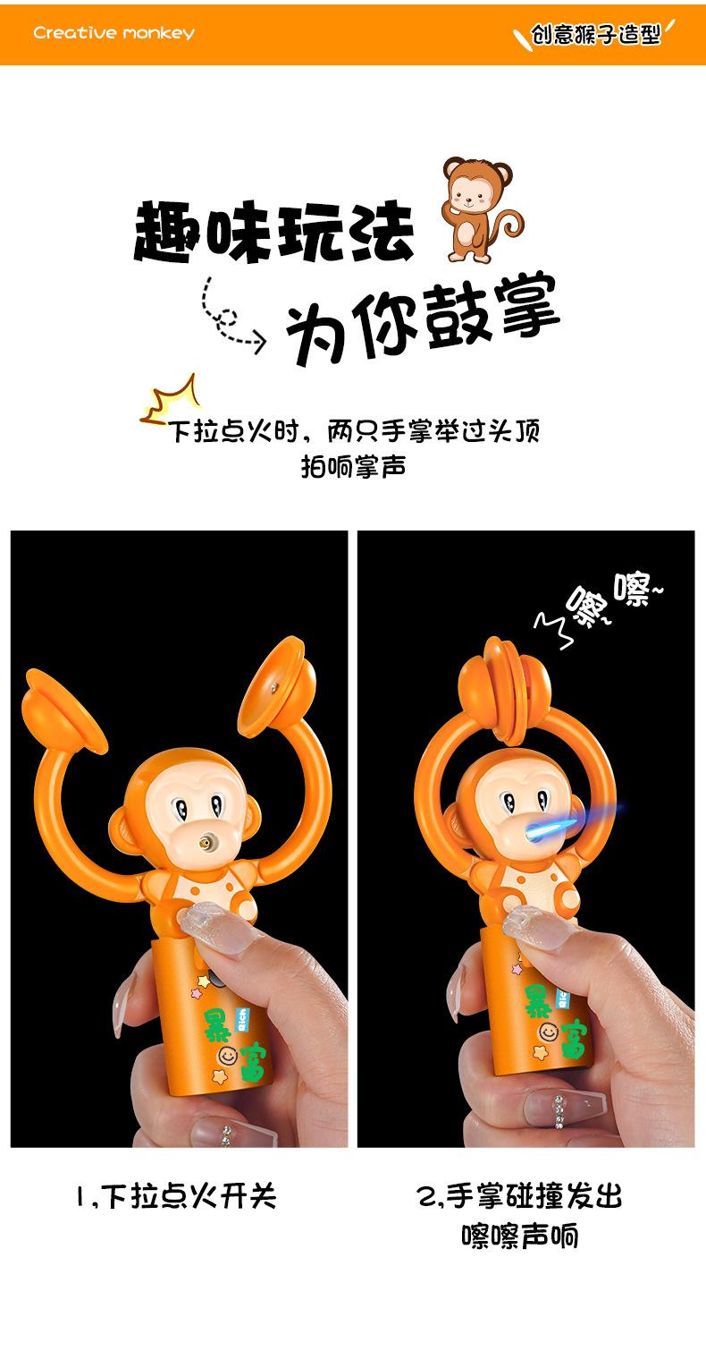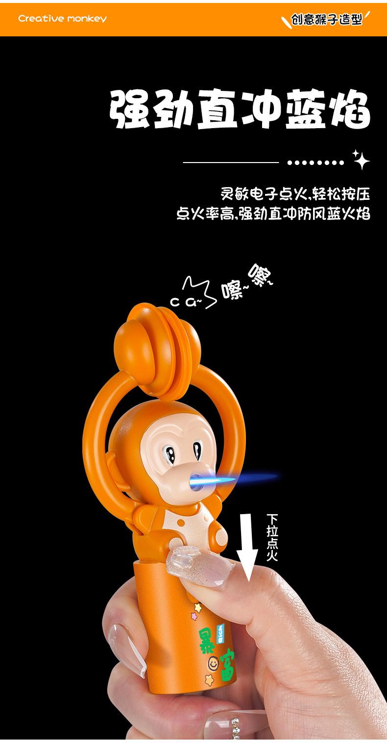 Lindo y Lujoso Mono de Dibujos Animados Tridimensional con Forma de Rayo, Jugabilidad Divertida, Aplaudir para Ti, Directo al Encendedor a Prueba de Viento de Llama Azul