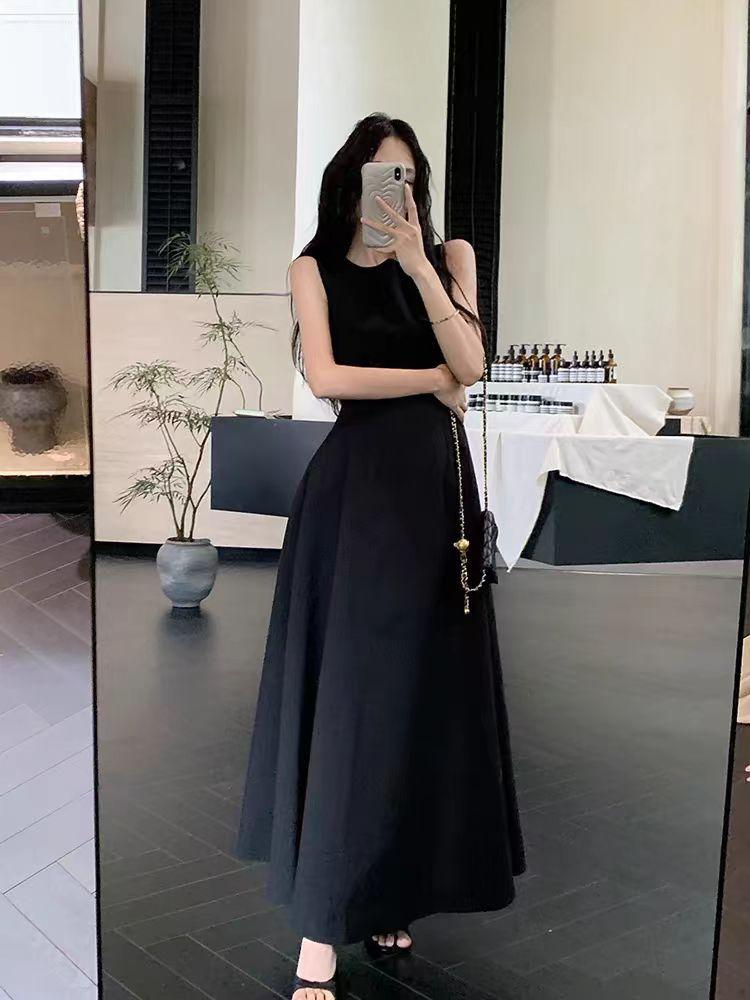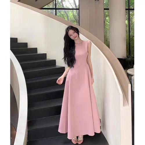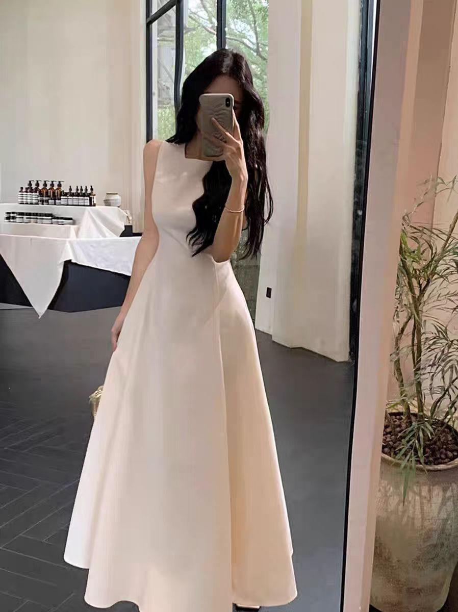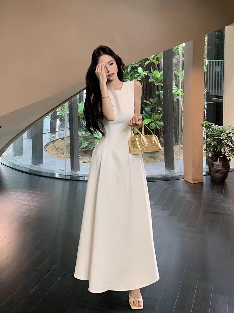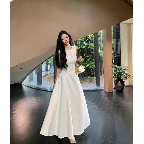 Vestido blanco para mujer verano 2025 nuevo temperamento francés de alta gama sin mangas chaleco cintura adelgazante vestido largo