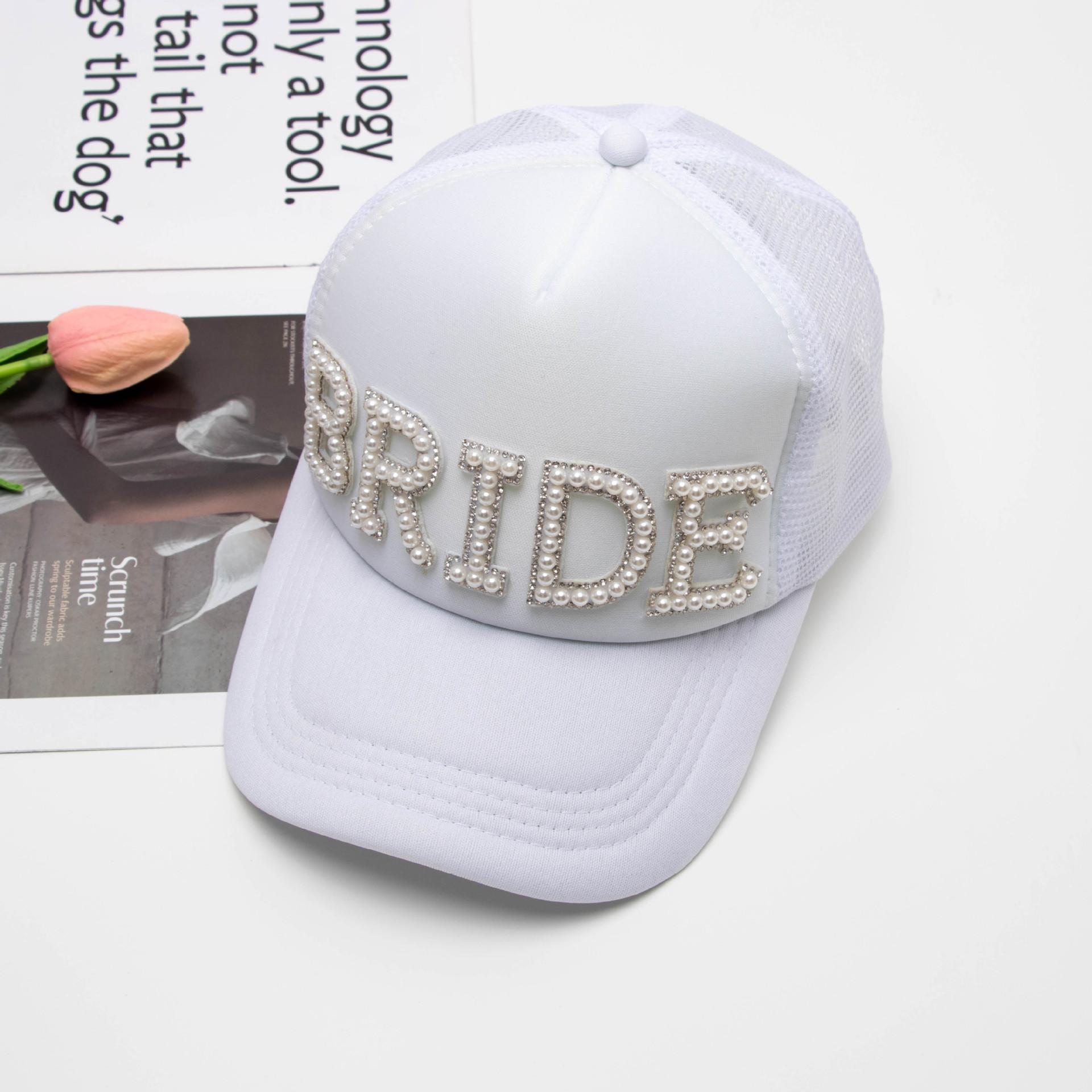 Amazon novia perla letra blanco diamante gorra de béisbol occidental europea y americana boda boda despedida de soltero decoración