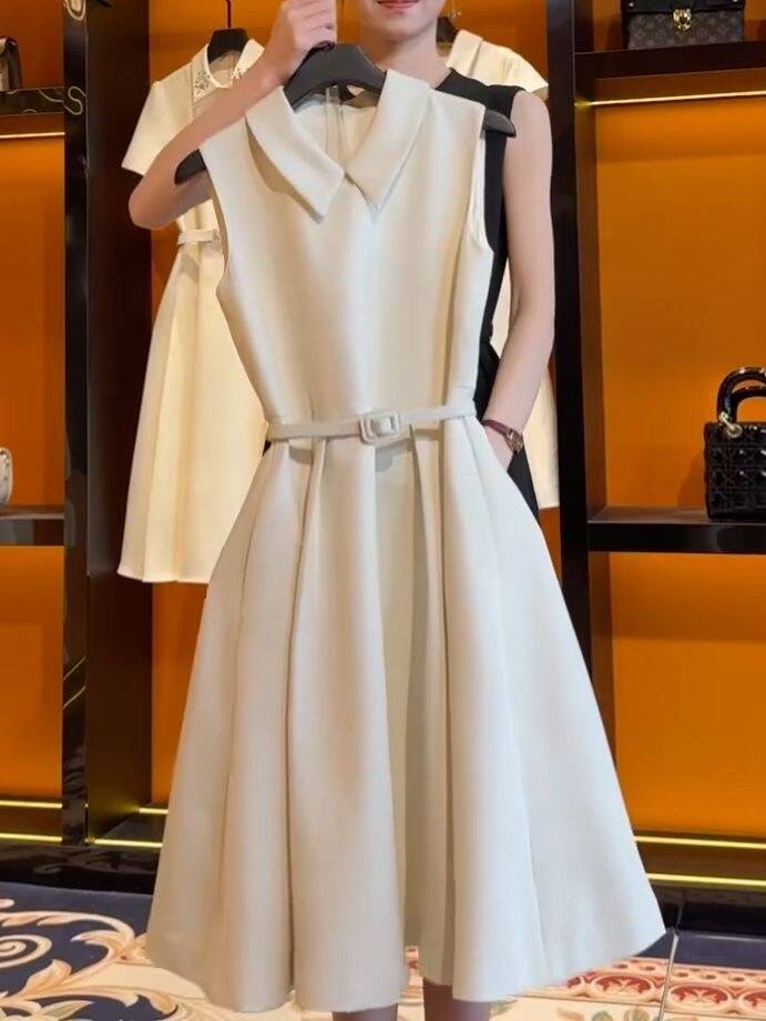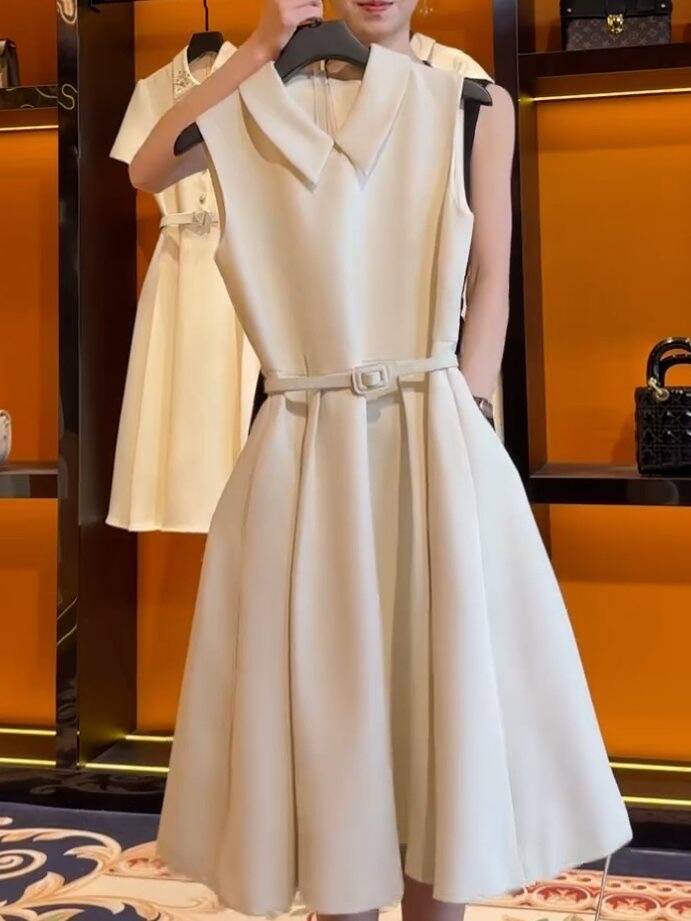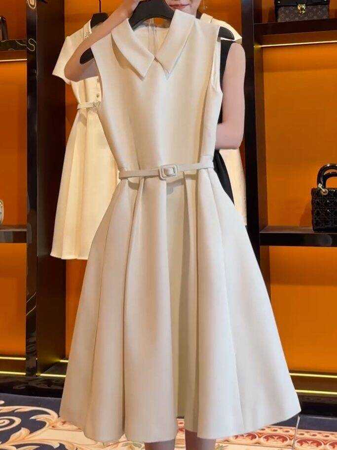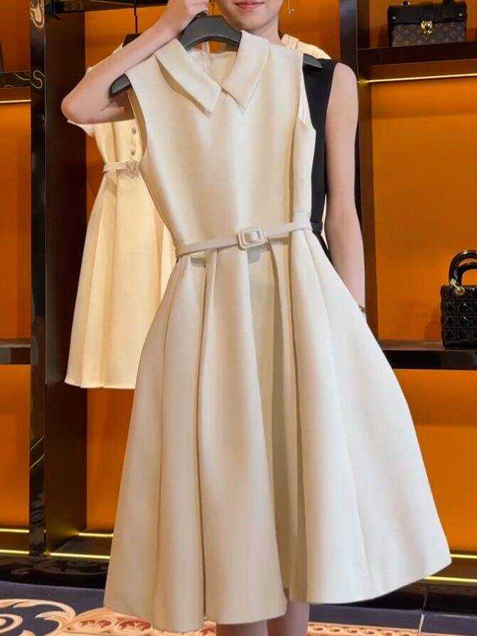 Verano 2024 Celebridad Fragancia Pequeña Hora del Té Diseño Estilo Francés Vestido de Verano de Cintura Sin Mangas Ropa de Mujer