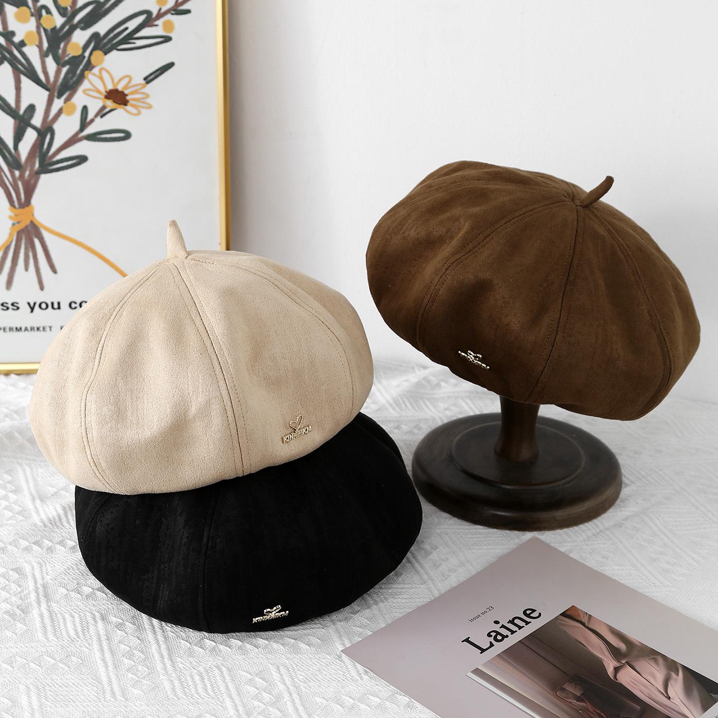 Boina de Moda Retro Británica Estilo Coreano Nuevo Decoración de Etiqueta Metálica Moda Casual Individual Sombrero de Pintor de Calabaza